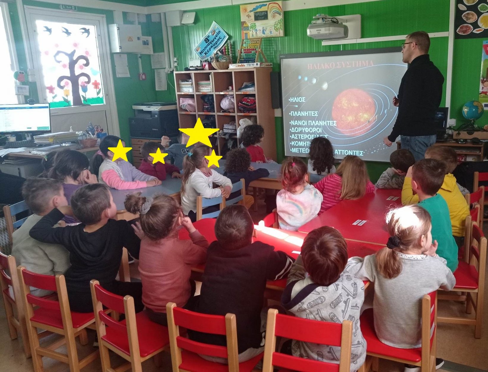 Τέλος, ευχαριστούμε θερμά τον κ. Γουναρόπουλο Χάρη, μέλος της Αστρονομικής Εταιρείας Κέρκυρας, για όσα ενδιαφέροντα μας έμαθε για τους πλανήτες με την επίσκεψή του στο σχολείο μας.