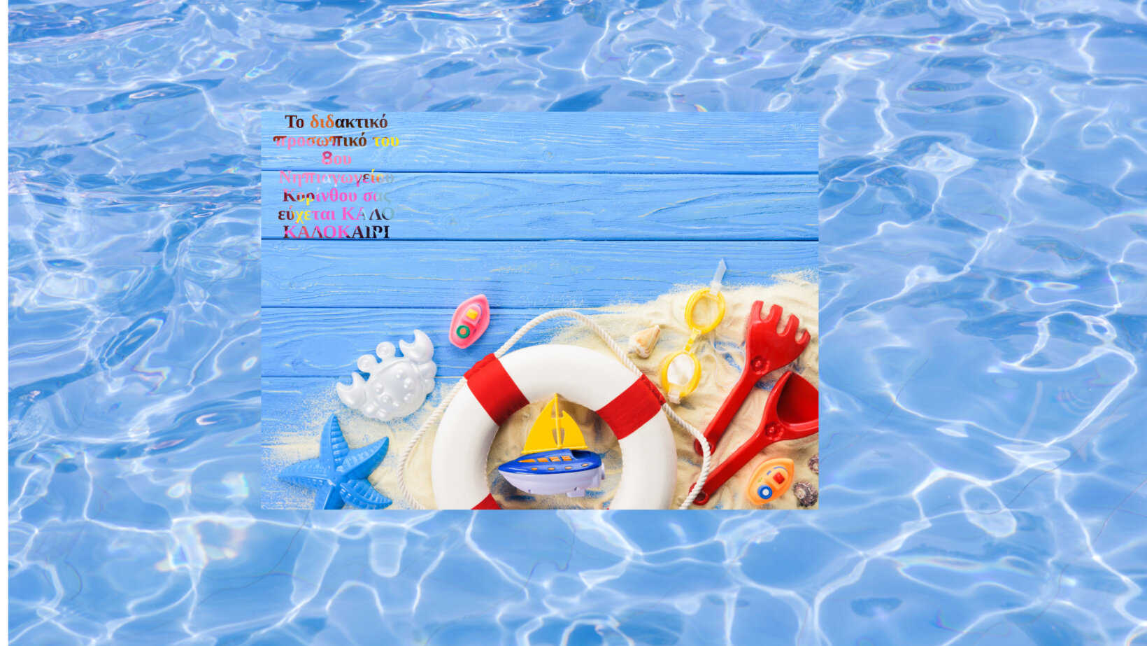 Με μεγάλη επιτυχία παραγματοποιήθηκε η καλοκαιρινή γιορτούλα μας με τίτλο”Η ΓΟΡΓΟΝΑ ΚΑΙ ΤΟ ΜΑΓΙΚΟ ΚΟΧΥΛΙ”την Τετάρτη 19.00μ.μ. Θέλουμε να ευχαριστήσουμε τους μαθητές και τις μαθήτριες του Νηπιαγωγείου μας για την πολύ όμορφη συνεργασία τους,το όμορφο θέαμα που πρόσφεραν ,το διδακτικό προσωπικό του Νηπιαγωγείου μας για την πολύ όμορφη συνεργασία μας και φυσικά τους γονείς των μαθητών μας.