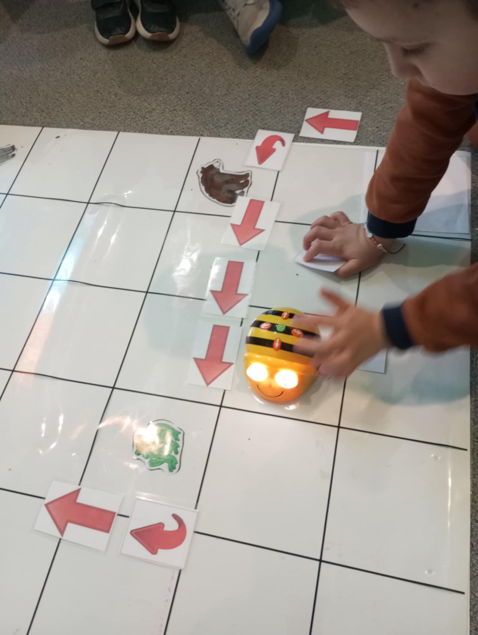 5)Είδαμε και επεξεργαστήκαμε Το Γάντι (The Mitten ή The old man’s mitten ή The magic glove), ένα παραδοσιακό ουκρανικό παραμύθι, κάναμε αντίστοιχες εργασίες, βάλαμε στη σειρά τα ζωάκια από το 1ο μέχρι το τελευταίο, κάνοντας αντιστοίχιση ζώου και αριθμού ενώ μάθαμε και τα τακτικά αριθμητικά και τέλος προγραμματίσαμε τη beebot να ακολουθήσει τη σωστή διαδρομή και να περάσει από τα ζωάκια ανάλογα με τη σειρά με την οποία μπήκαν στο Γάντι για να ζεσταθούν.