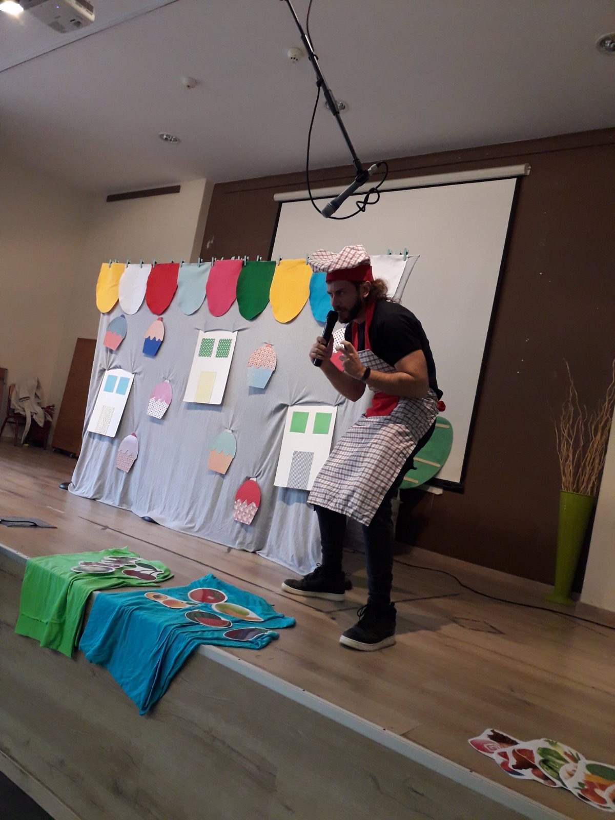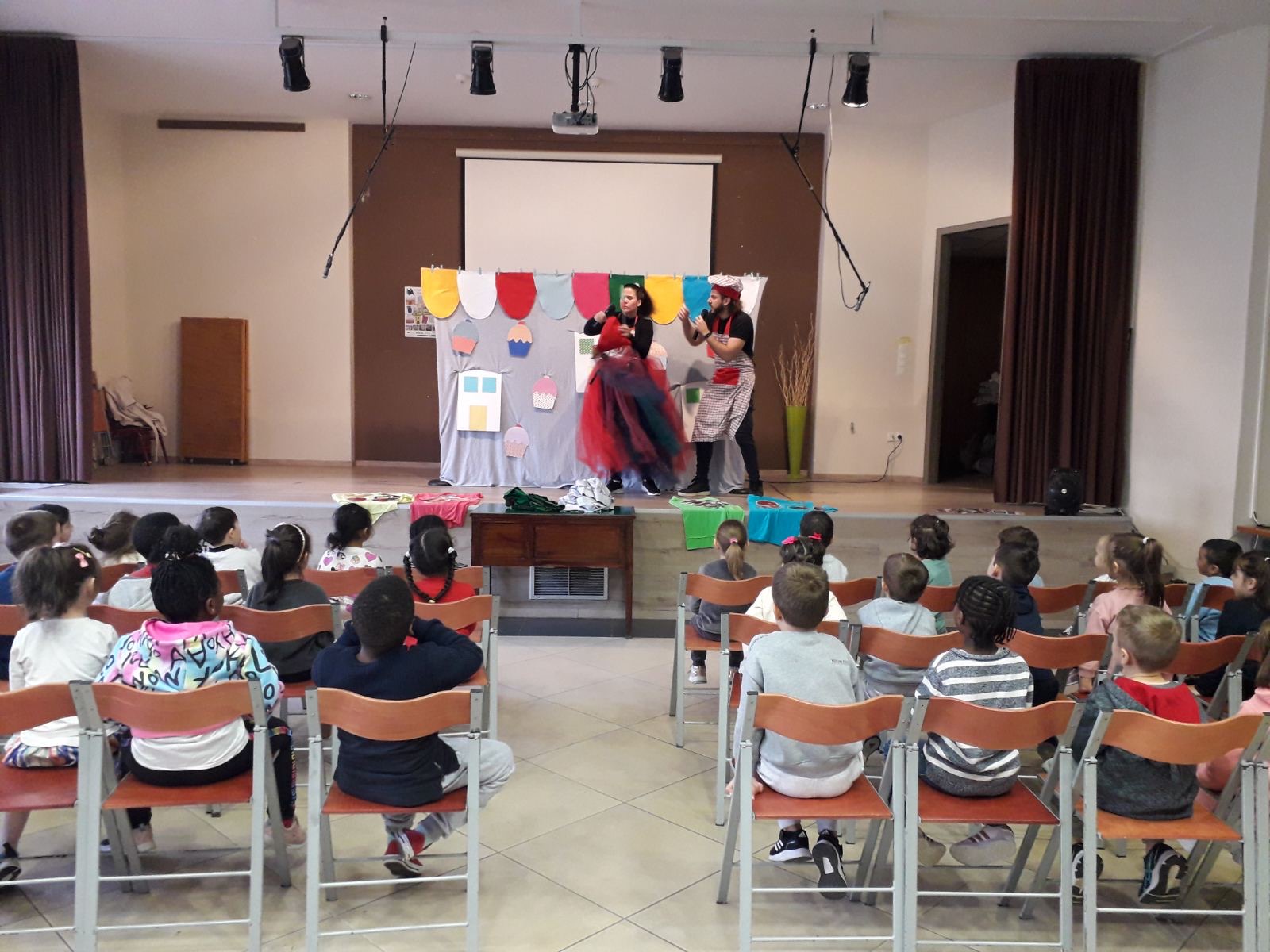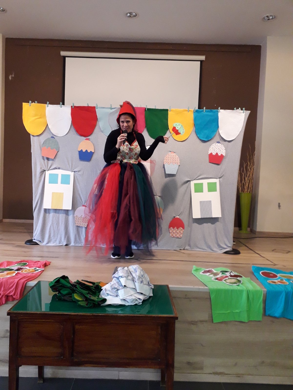 Οι μαθητές μας βοήθησαν τους ηθοποιούς να βάλουν τα φρούτα και τα λαχανικά στην κατάλληλη εποχή τους, γνώρισαν τη «Μάγισσα Ζαχάρα» που δεν ήθελε να τρώει υγιεινά, μεταμφιέστηκαν σε ζαχαροπλάστες και σε φρούτα, κατασκεύασαν την τροφική πυραμίδα, χόρεψαν, διασκέδασαν και εντέλει έμαθαν στην «Μάγισσα Ζαχάρα» πως πρέπει να τρώμε υγιεινά.