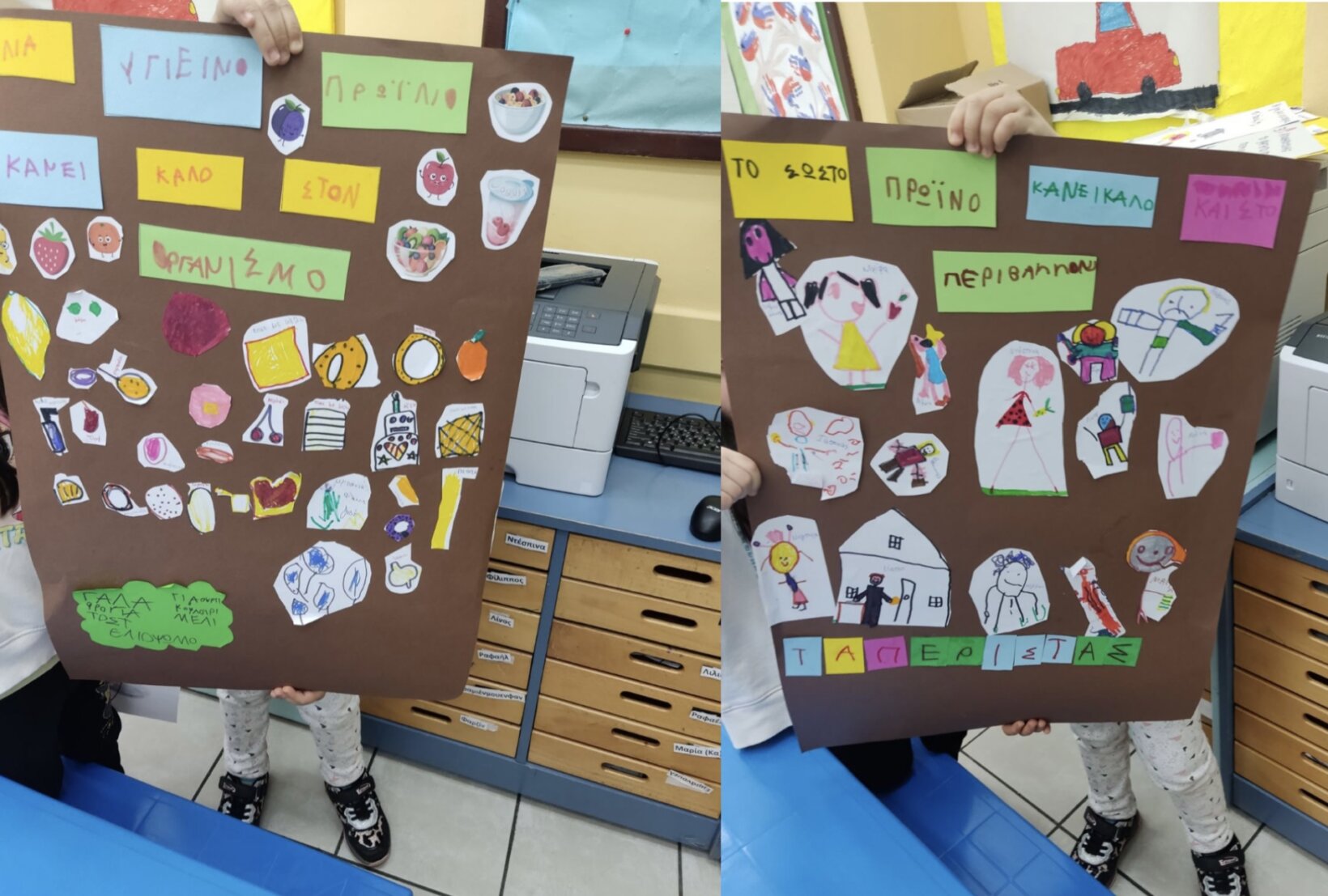 Κλείνοντας το ταξίδι των αποστολών και με την υπόσχεση ότι η Υγιεινούλα θα επιστρέψει σύντομα με καινούριες περιπέτειες, τα παιδιά έφτιαξαν διπλή αφίσα με σημαντικά μηνύματα για το σωστό πρωινό που χρειάζεται να τρώνε και για τη βοήθεια που προσφέρουν με αυτόν τον τρόπο στο περιβάλλον.