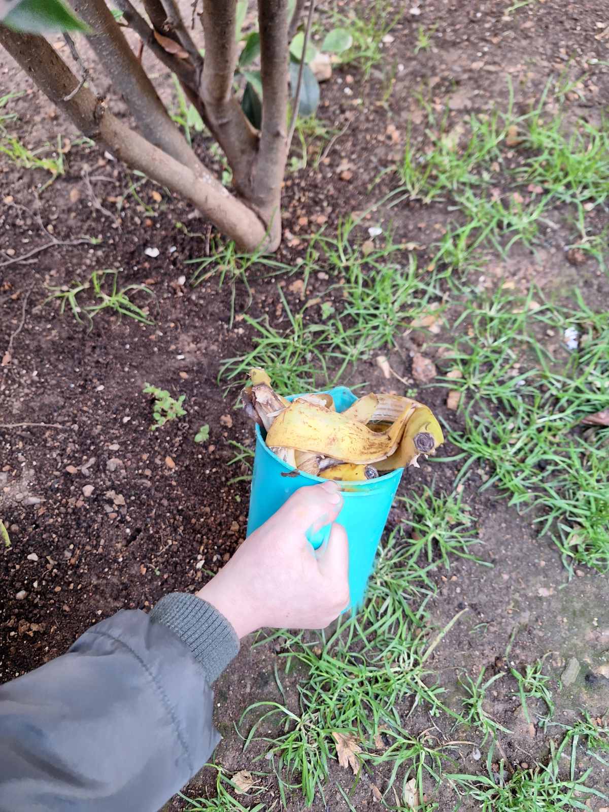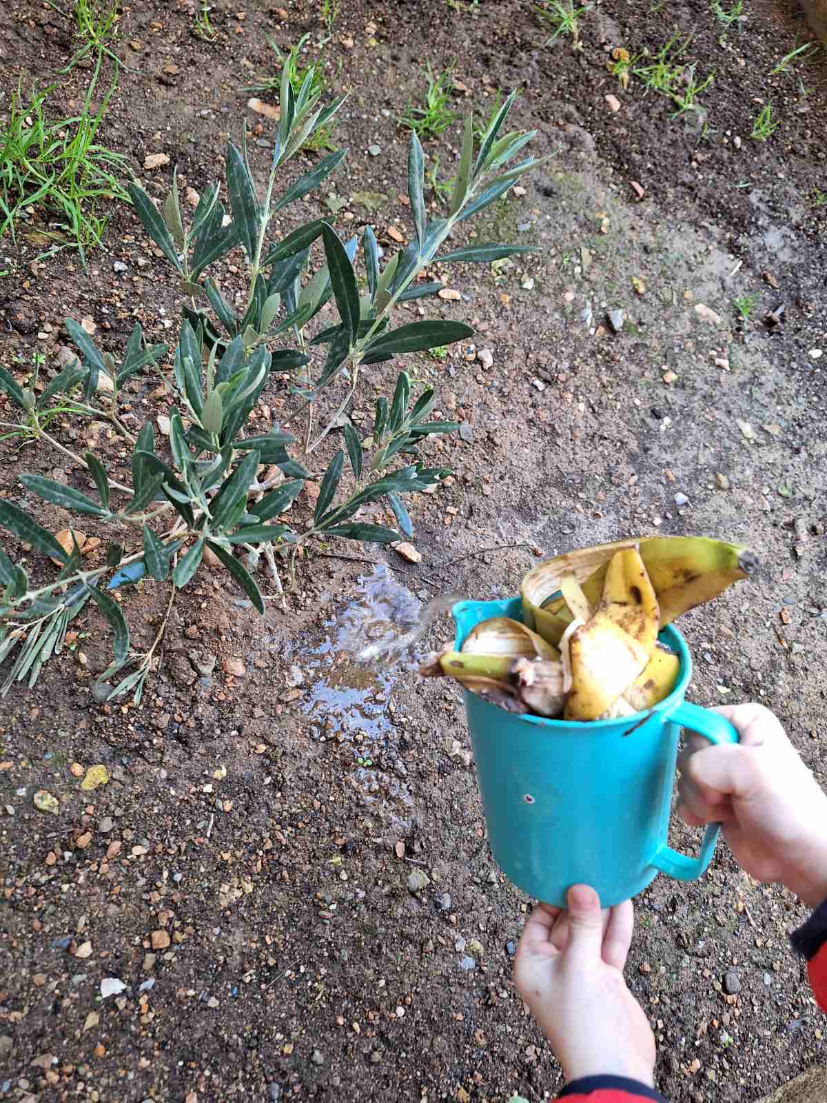 Αποφασίσαμε, όλοι μαζί να μην πετάμε τις φλούδες από τις μπανάνες μας, αλλά να τις αξιοποιούμε όπως μπορούμε. Έτσι, αφού φάμε βάζουμε τις φλούδες μέσα στο ποτιστήρι μας μαζί με νερό και ποτίζουμε τα φυτά του σχολείου μας, δημιουργώντας το δικό μας “λίπασμα”.