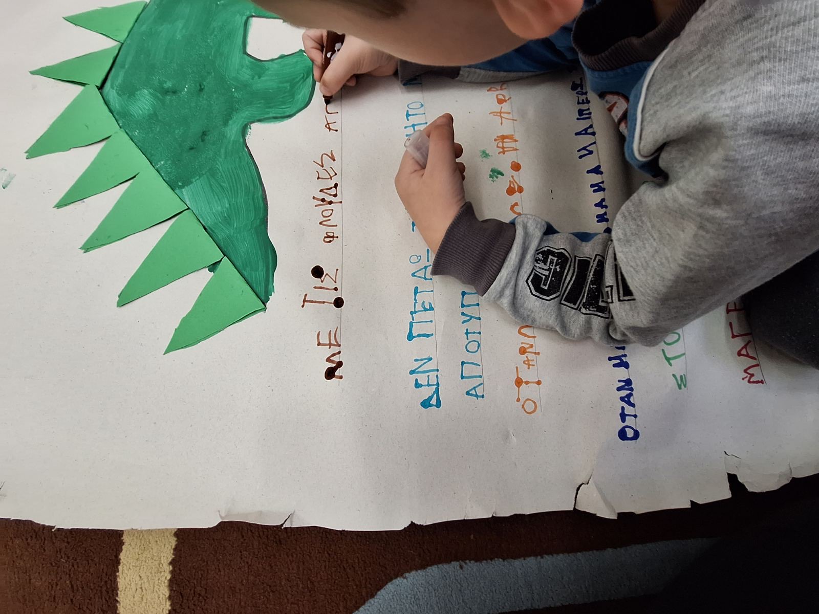 Με αφορμή, την ανάγνωση του βιβλίου “ΔΙΝΩΣΑΥΡΟΣ” συζητήσαμε με τα παιδιά για τη μείωση των τροφίμων στα απορρίμματα που πετάμε καθημερινά.