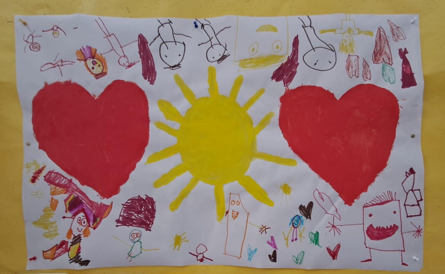 Τέλος, ακούσαμε το τραγούδι «Τα παιδιά ζωγραφίζουν στον τοίχο» και πραγματοποιήθηκε ακόμα μια ομαδική εργασία.