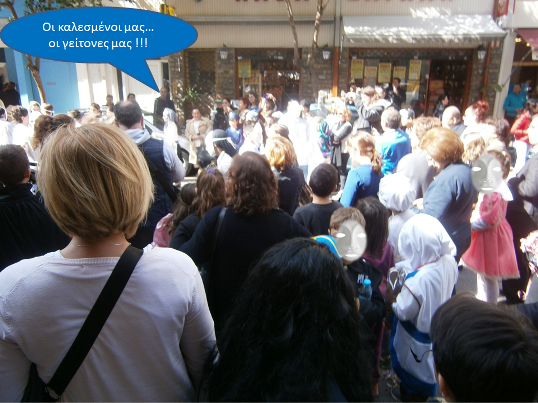 Όλη η γειτονιά ήταν εκεί ,οι καταστηματάρχες κερνούσαν τον κόσμο , κομφετί και σερπαντίνες μαζί με τα χαμόγελα μας, έδωσαν χρώμα στους δρόμους της μικρής μας γειτονιάς και στις καρδιές μας