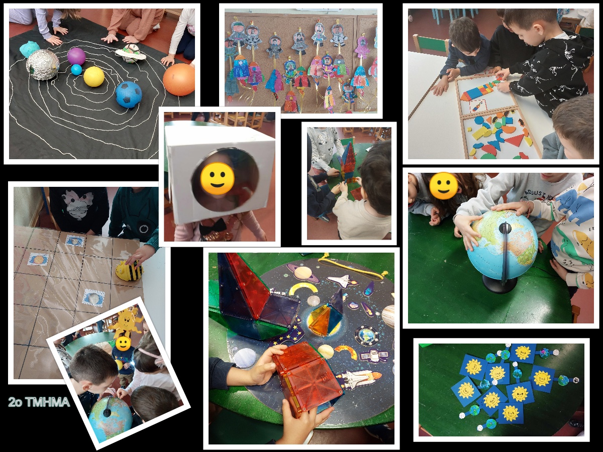 Η εβδομάδα του κώδικα αξιοποιήθηκε σε όλα τα επίπεδα από τα 4 τμήματα του νηπιαγωγείου μας. Μετά από μια πρώτη ελεύθερη εξοικείωση των νηπίων με τις χωρικές κατευθύνσεις: μπροστά-πίσω στρίψε αριστερά-στρίψε δεξιά, δημιουργήσαμε ένα κοινό επιδαπέδιο πλέγμα 5Χ5 και τοποθετήσαμε τα αρχικά των ονομάτων των μαθητών. Το κάθε παιδί έγινε “ρομποτάκι” και σε μια umplugged δραστηριότητα κλήθηκε να αναγνωρίσει το αρχικό του, να τοποθετήσει τα βελάκια με τη σωστή σειρά εκτελώντας την διαδρομή για να φτάσει στο αρχικό του γράμμα.