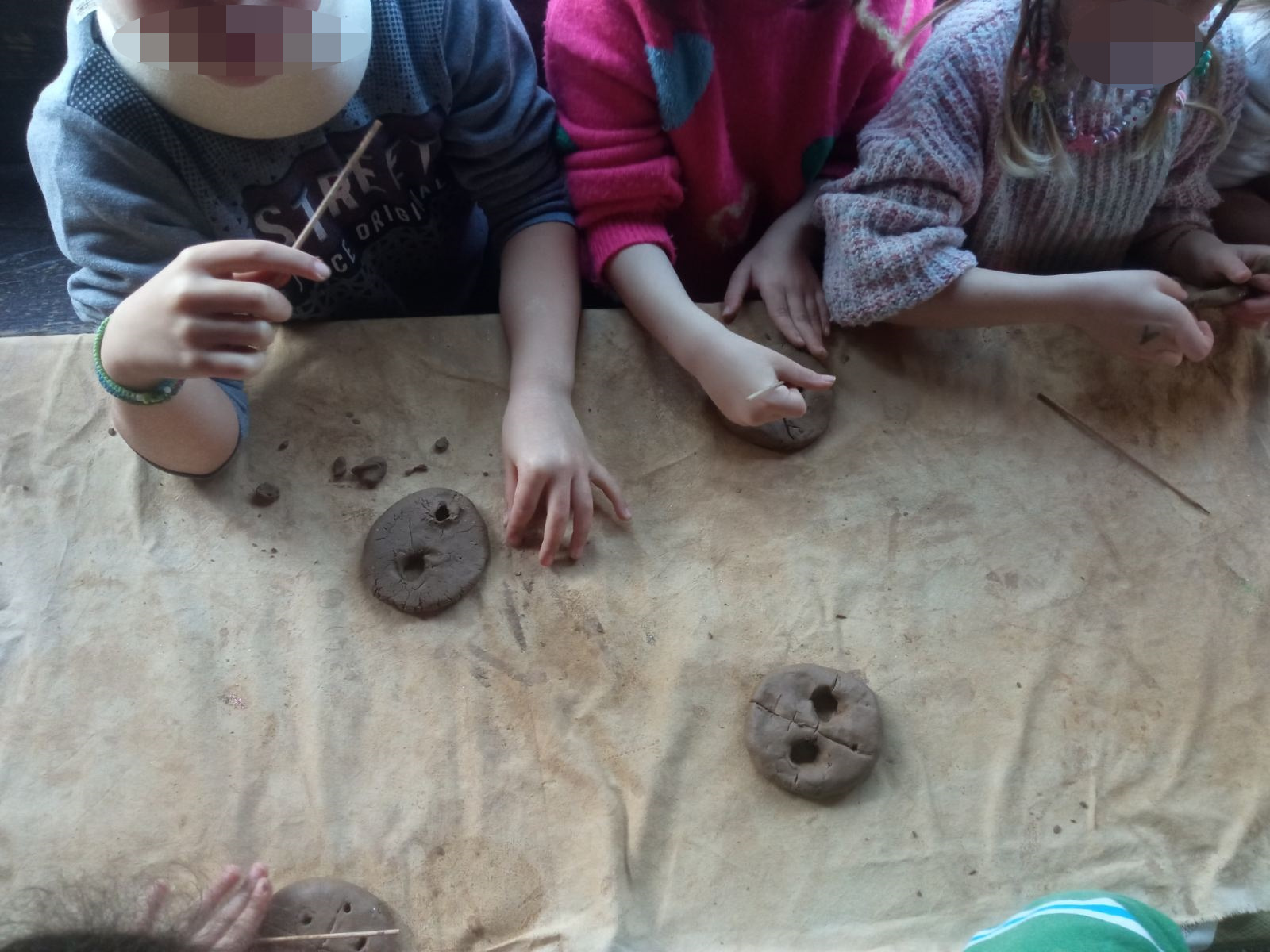 Τα παιδιά ήρθαν σε επαφή με τον πηλό, ένα φυσικό υλικό που κέντρισε αμέσως το ενδιαφέρον τους. Με τη βοήθεια των εκπαιδευτών, γνώρισαν βασικές τεχνικές κεραμικής και, αφήνοντας ελεύθερη τη φαντασία τους, δημιούργησαν τις δικές τους μοναδικές μάσκες, εμπνευσμένες από το χαρούμενο και παιχνιδιάρικο κλίμα της Αποκριάς.