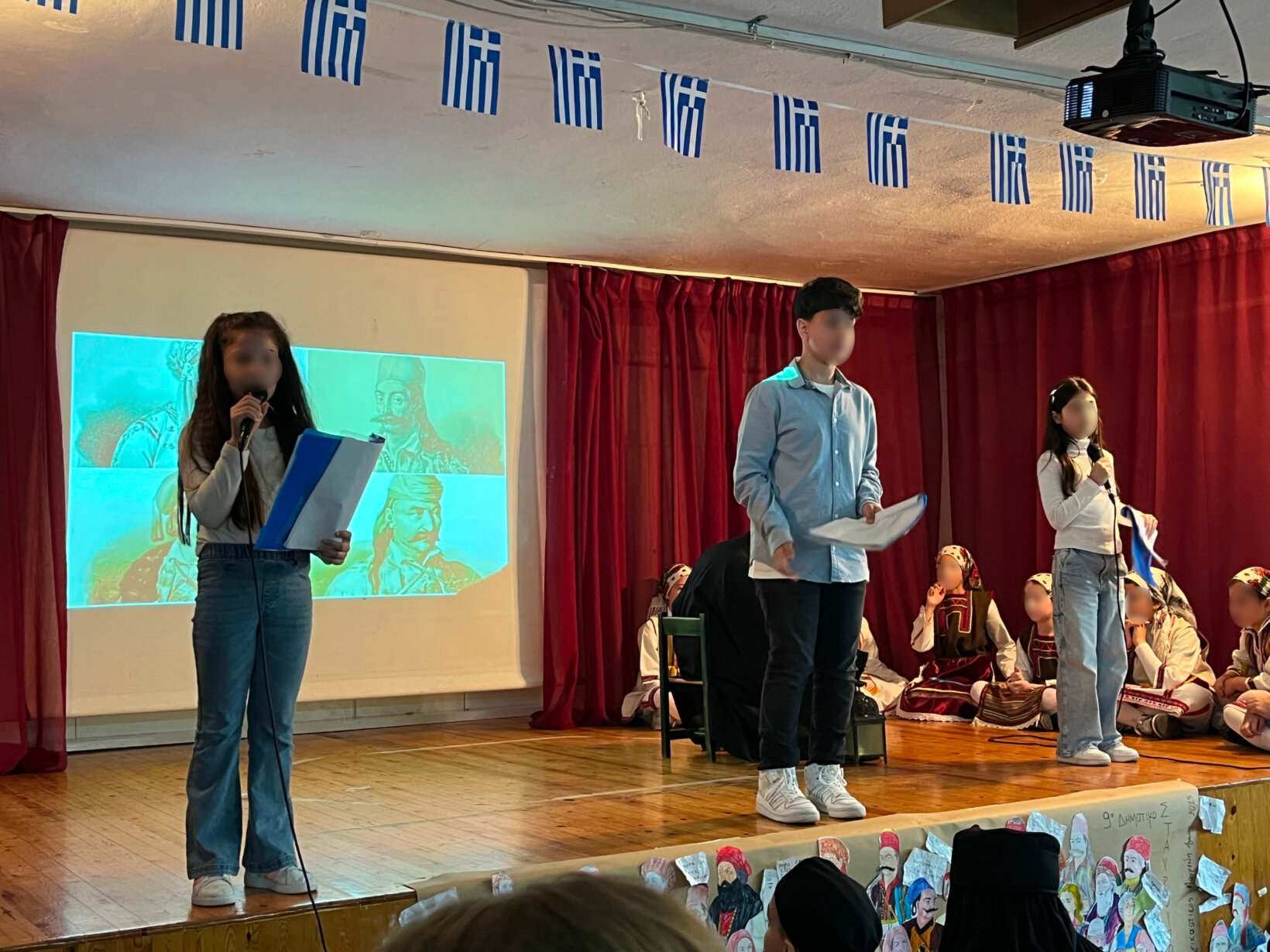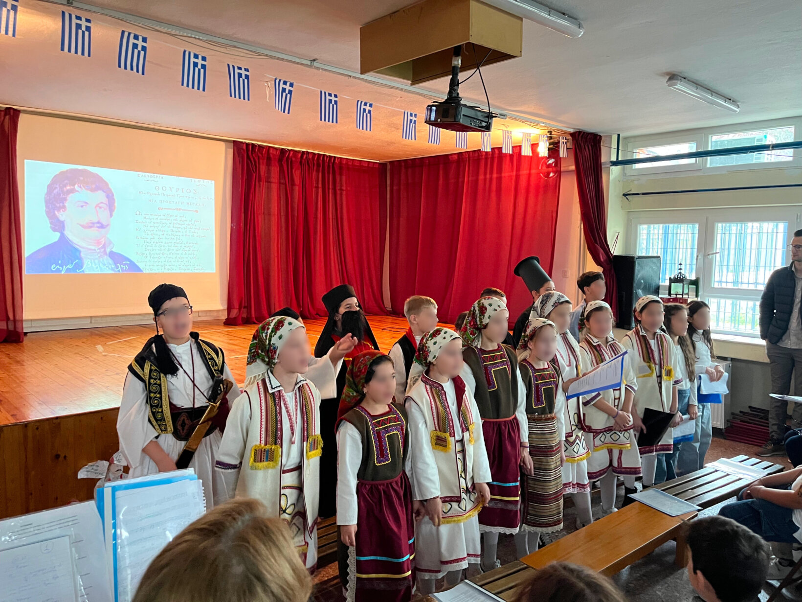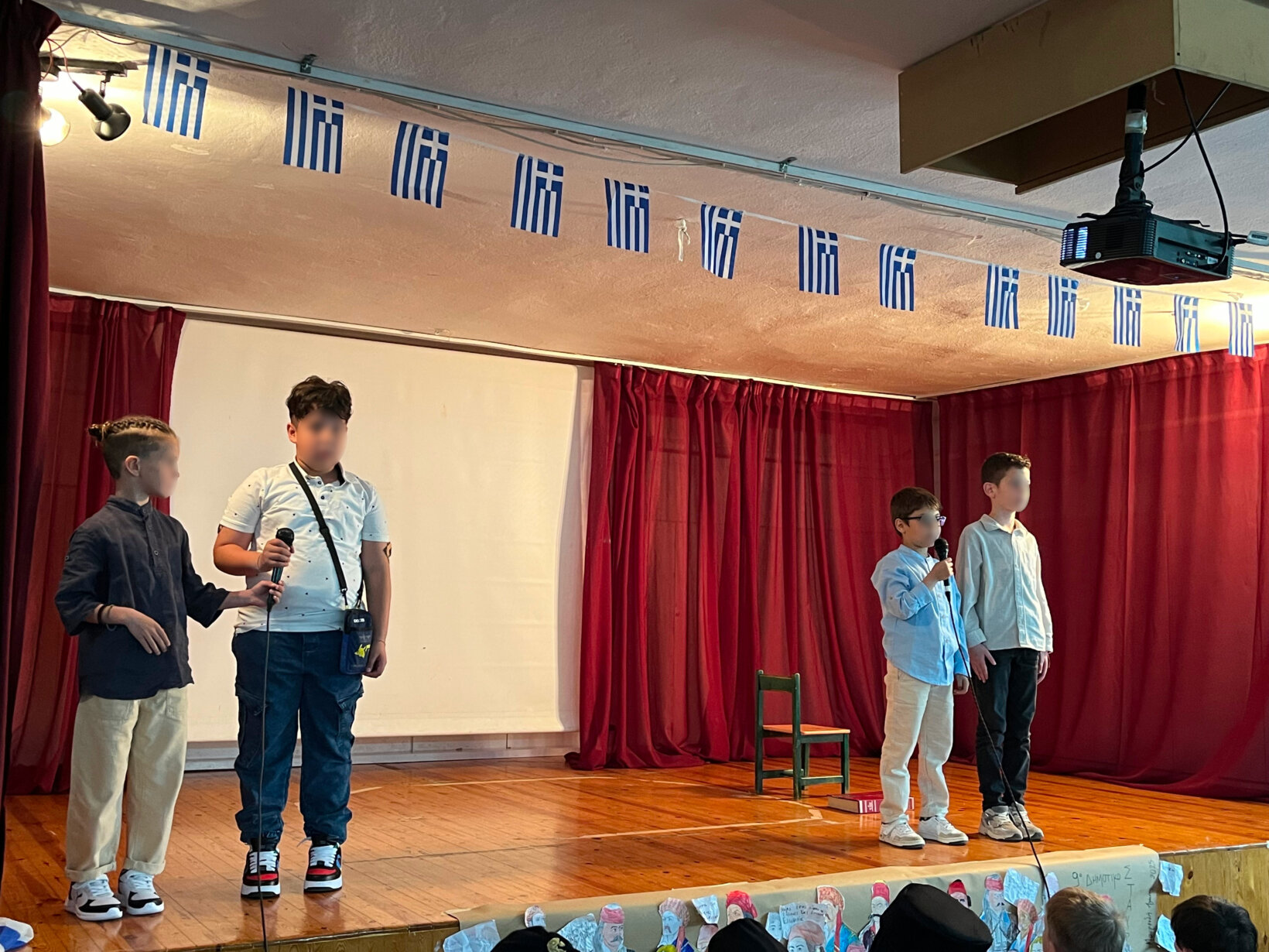 Τη Δευτέρα 24 Μαρτίου οι μαθητές και οι μαθήτριες της Β΄ και Δ΄ τάξης με τη βοήθεια των δασκάλων τους Αραμπατζή Ελένη, Γκαλέτσα Ελένη, Λογοθετίδου Κωνσταντία και Τουπλικιώτη Παναγιώτα παρουσίασαν με μεγάλη επιτυχία τη γιορτή για την επέτειο της 25ης Μαρτίου στην Αίθουσα Εκδηλώσεων του Σχολείου.