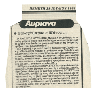 Το ΄66 βρέθηκα στην Αμερική. Έμεινα κι έζησα εκεί κάπου έξι χρόνια, τα χρόνια της δικτατορίας, για λόγους καθαρά εφοριακούς – ανεκαλύφθη πως χρωστούσα τρεισήμισι περίπου εκατομμύρια στο δημόσιο. Όταν εξόφλησα το χρέος μου επέστρεψα περίπου το ’72 και ίδρυσα ένα καφενείο που το ονομάσαμε Πολύτροπον, ίσαμε τη μεταπολίτευση του ’74, όπου και τόκλεισα γιατί άρχιζε η εποχή των γηπέδων και των μεγάλων λαϊκών εκτονώσεων. Κράτησα την ψυχραιμία μου και δεν εχόρεψα εθνικούς και αντιστασιακούς χορούς στα γυμναστήρια και στα γεμάτα από νέους γήπεδα. Κλείνοντας το Πολύτροπο είχα ένα παθητικό πάλι της τάξεως περίπου των τρεισήμισι εκατομμυρίων – μοιραίος αριθμός, φαίνεται, για την προσωπική μου ζωή. Από το ’75 αρχίζει μια διάσημη εποχή μου που θα την λέγαμε, για να την ξεχωρίσουμε, υπαλληλική, που μ’ έκανε ιδιαίτερα γνωστό σ’ ένα μεγάλο και απληροφόρητο κοινό, βεβαίως ελληνικό, σαν άσπονδο εχθρό της ελληνικής μουσικής, των ελλήνων μουσικών και της εξίσου ελληνικής κουλτούρας. Μέσα σ’ αυτή την περίοδο και ύστερα από ένα ανεπιτυχές έμφραγμα στην καρδιά, προσπάθησα πάλι, ανεπιτυχώς είναι αλήθεια, να πραγματοποιήσω τις ακριβές καφενειακές μου ιδέες πότε στην ΕΡΤ και πότε στο Υπουργείο Πολιτισμού , εννοώντας να επιβάλω τις απόψεις μου με δημοκρατικές διαδικασίες. Και οι δύο όμως τούτοι οργανισμοί σαθροί και διαβρωμένοι από τη γέννησή τους κατάφεραν να αντισταθούν επιτυχώς και, καθώς λεν, να με νικήσουν «κατά κράτος». Παρ΄ όλα αυτά, μέσα σε τούτον τον καιρό γεννήθηκε το Τρίτο κι επιβλήθηκε στη χώρα. Έτσι κατάφερα να ολοκληρώσω την τραυματισμένη από την παιδική μου ηλικία προσωπικότητα, καταλήγοντας να πουλώ «λαχεία στον ουρανό» και προκαλώντας τον σεβασμό των νεωτέρων μου μια και παρέμεινα ένας γνήσιος Έλληνας και Μεγάλος Ερωτικός.
