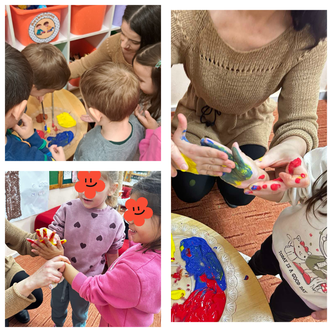 Στη συνέχεια, όλοι μαζί δημιουργήσαμε ένα υπέροχο κολάζ–ένα «Δέντρο της Φιλίας». Βουτήξαμε τα χέρια μας στις μπογιές, ενώ κάποια παιδιά δοκίμασαν και ζωγραφική με τα πόδια, θέλοντας να νιώσουμε έστω και λίγο διαφορετικούς τρόπους έκφρασης και δημιουργίας. Ενώσαμε χεράκια, ανταλλάξαμε χαμόγελα και αφήσαμε το αποτύπωμά μας πάνω στο δέντρο, ως σύμβολο ενότητας και συνεργασίας.