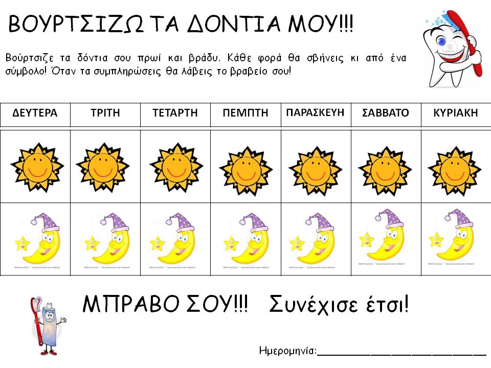 μαζί με ένα πίνακα ελέγχου βουρτσίσματος που θα τα βοηθήσει να είναι σταθερά στο ραντεβού τους με το βούρτσισμα.