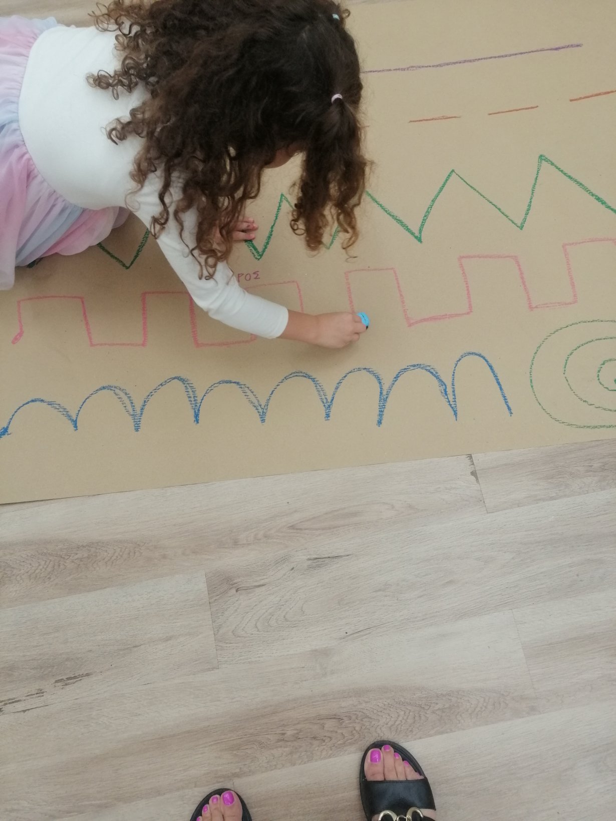 Μέσα από την ιστορία της Λίας τα παιδιά παρατήρησαν πώς οι γραμμές υπάρχουν παντού γύρω μας — στο σώμα μας, στα αντικείμενα, στη φύση, ακόμη και στα συναισθήματά μας.