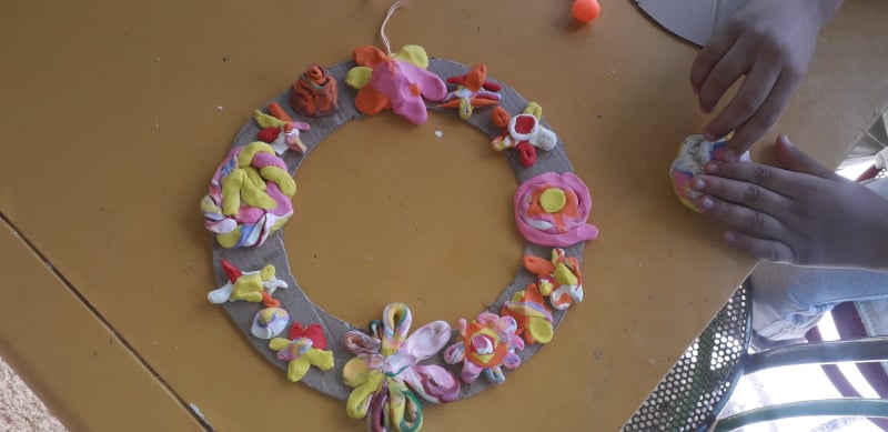 Ο Παύλος έφτιαξε λουλούδια με πλαστελίνη και έκανε αυτό το όμορφο στεφάνι για την Πρωτομαγιά.