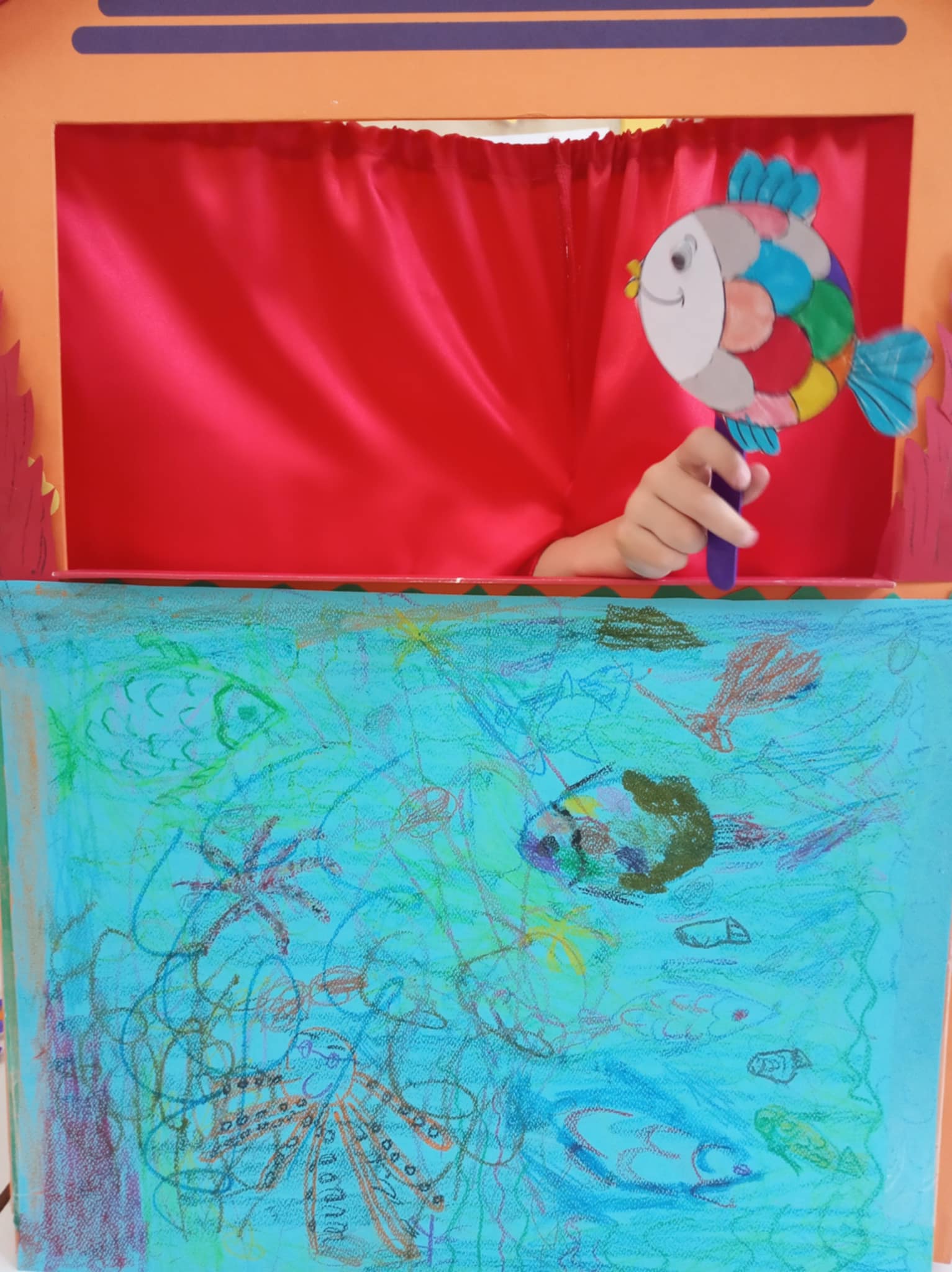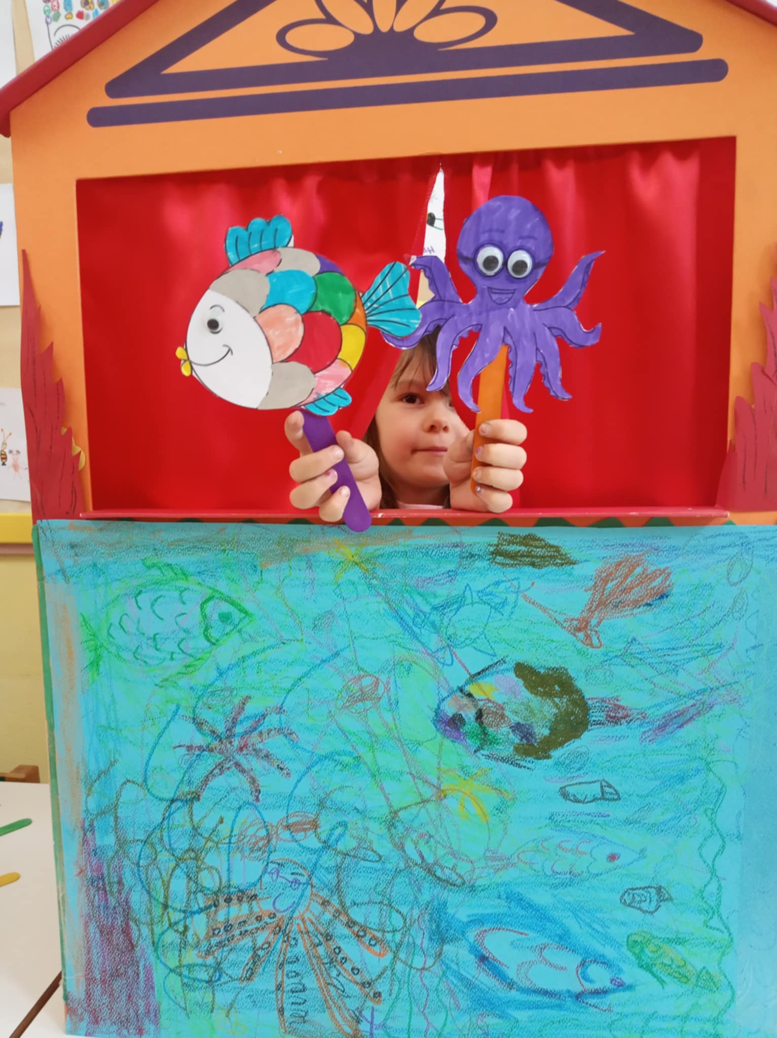 Σε συνεργασία με την εκπαιδευτικό των Αγγλικών διαβάστηκε το παραμύθι <<The Rainbow Fish>>στα Αγγλικά και <<Ο Ασημάκης το πολύχρωμο ψαράκι>> στα Ελληνικά. Τα παιδιά δημιούργησαν τους πρωταγωνιστές και το σκηνικό του κουκλοθεάτρου και έπαιξαν την ιστορία.