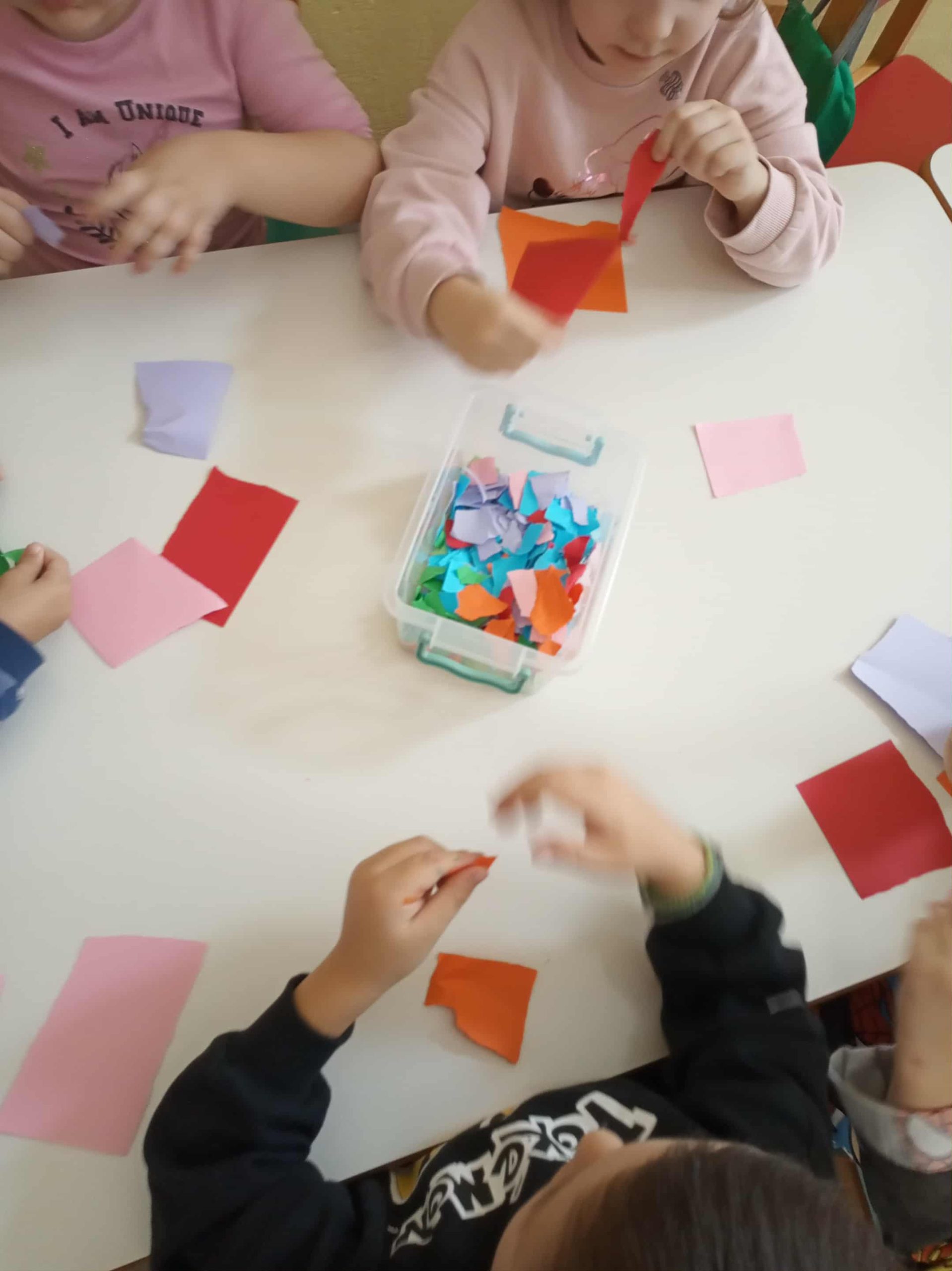 ΠΟΛΥΧΡΩΜΕΣ ΟΜΠΡΕΛΕΣ Συνεργαζόμαστε σε ομάδες , με τα χέρια μας σκίζουμε πολύχρωμα χαρτιά και στολίζουμε τις ομπρέλες μας!!
