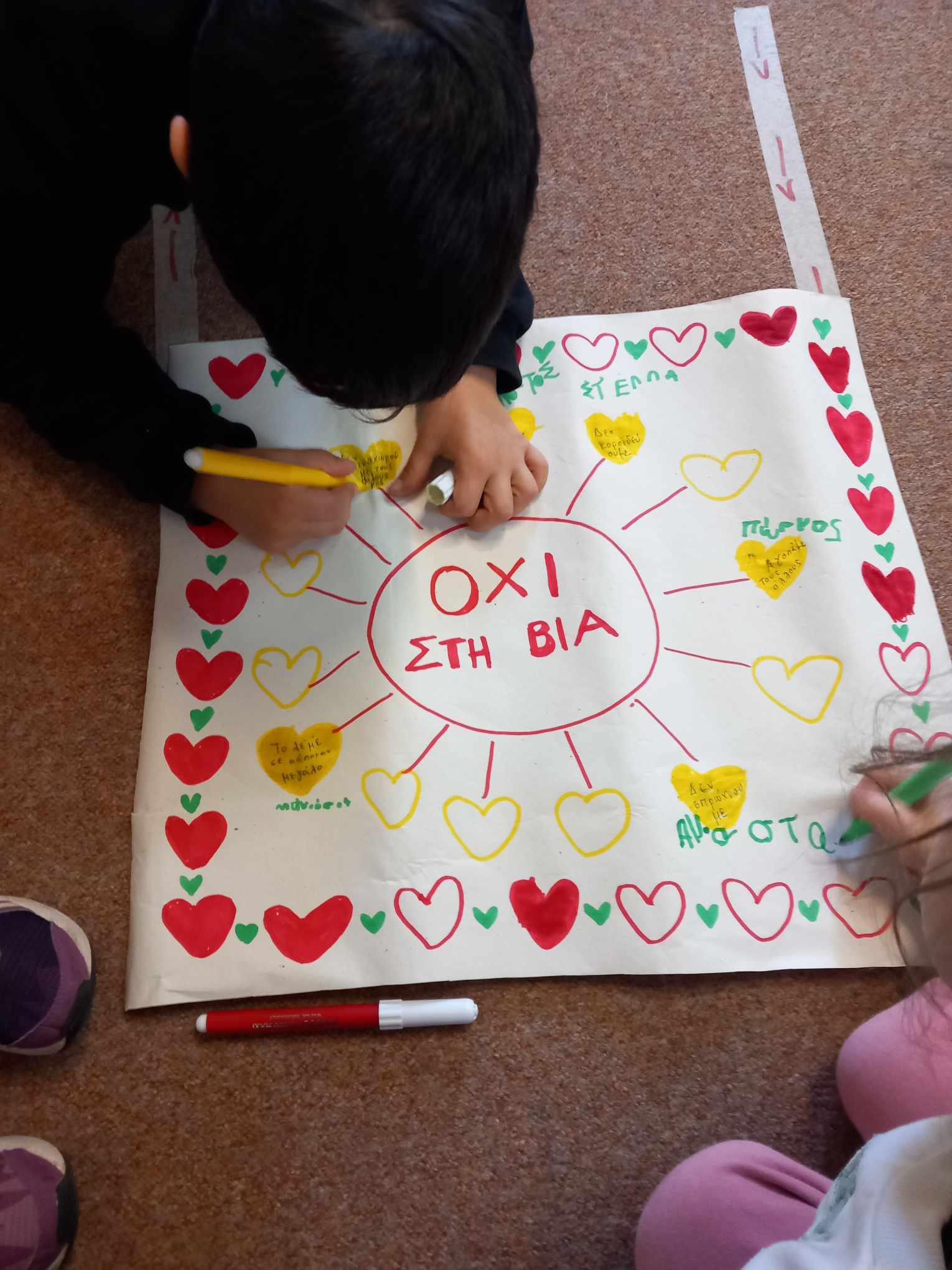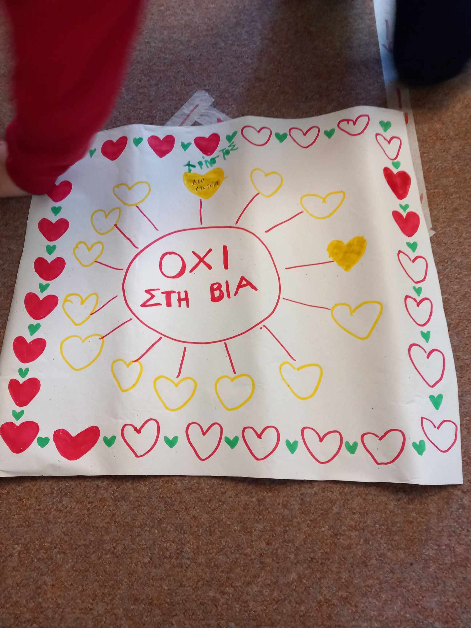 Με τα παιδιά συζητήσαμε για αυτήν την ημέρα, θέσαμε τους προβληματισμούς μας, εκφράσαμε τις προτάσεις μας για την εξάλειψη της Βίας και τις αποτυπώσαμε σε αφίσες που δημιουργήσαμε όλοι μαζί σαν μία δυνατή και αγαπημένη ομάδα !!!