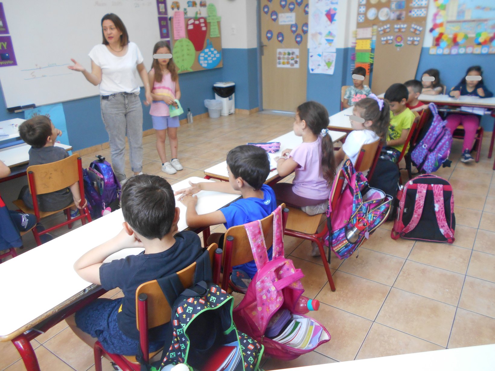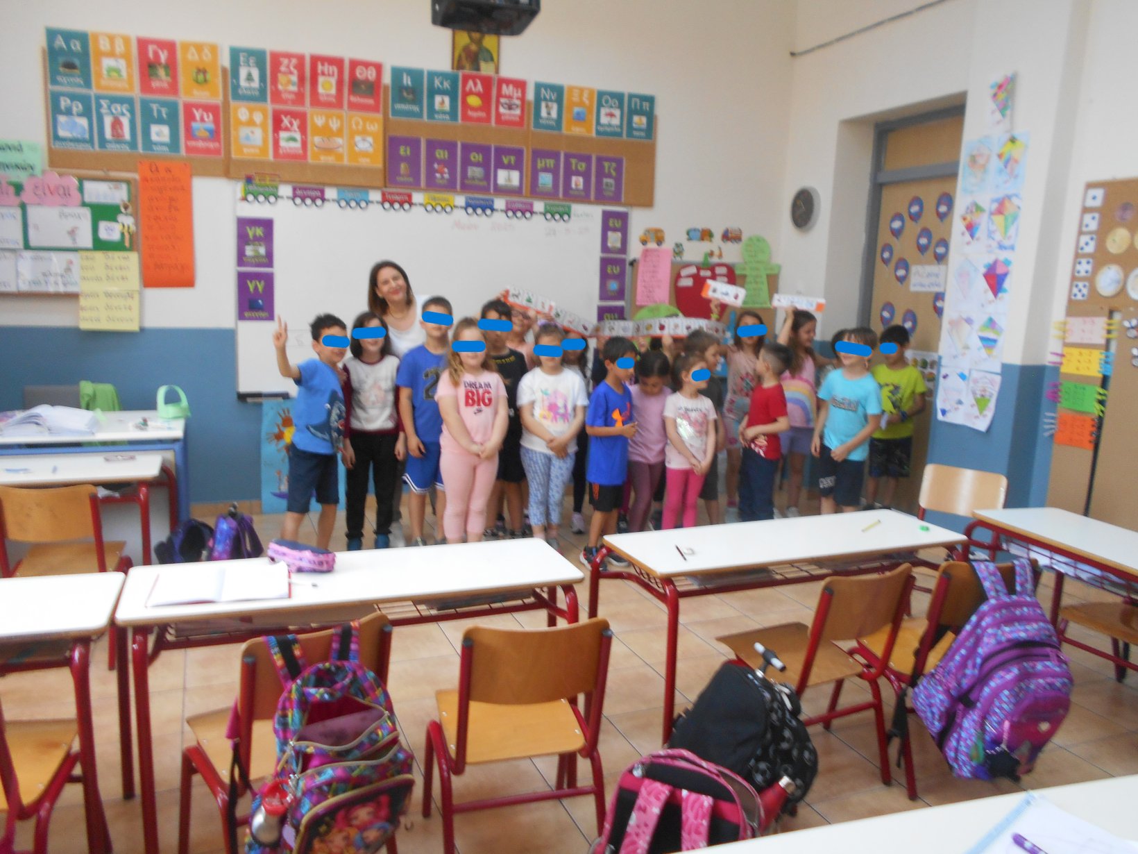 Μας υποδέχτηκε η κ. Αυγούστα Ρισκάκη και τα παιδιά και καθίσαμε μαζί τους στα θρανία.