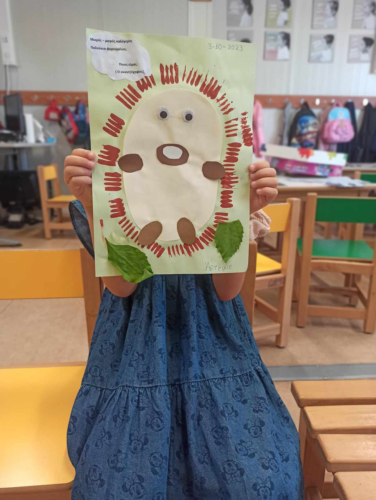 Κατασκευάσαμε, επίσης, με πιρούνια τα δικά μας σκαντζοχοιράκια και γνωρίσαμε μέσα από την μουσικοχορευτική παράσταση «Το ταξίδι του Χελιδονιού» που επισκέφτηκε το σχολείο μας, τα αποδημητικά πουλιά, που ετοιμάζονται για το μακρινό τους ταξίδι σε χώρες ζεστές και εξωτικές.