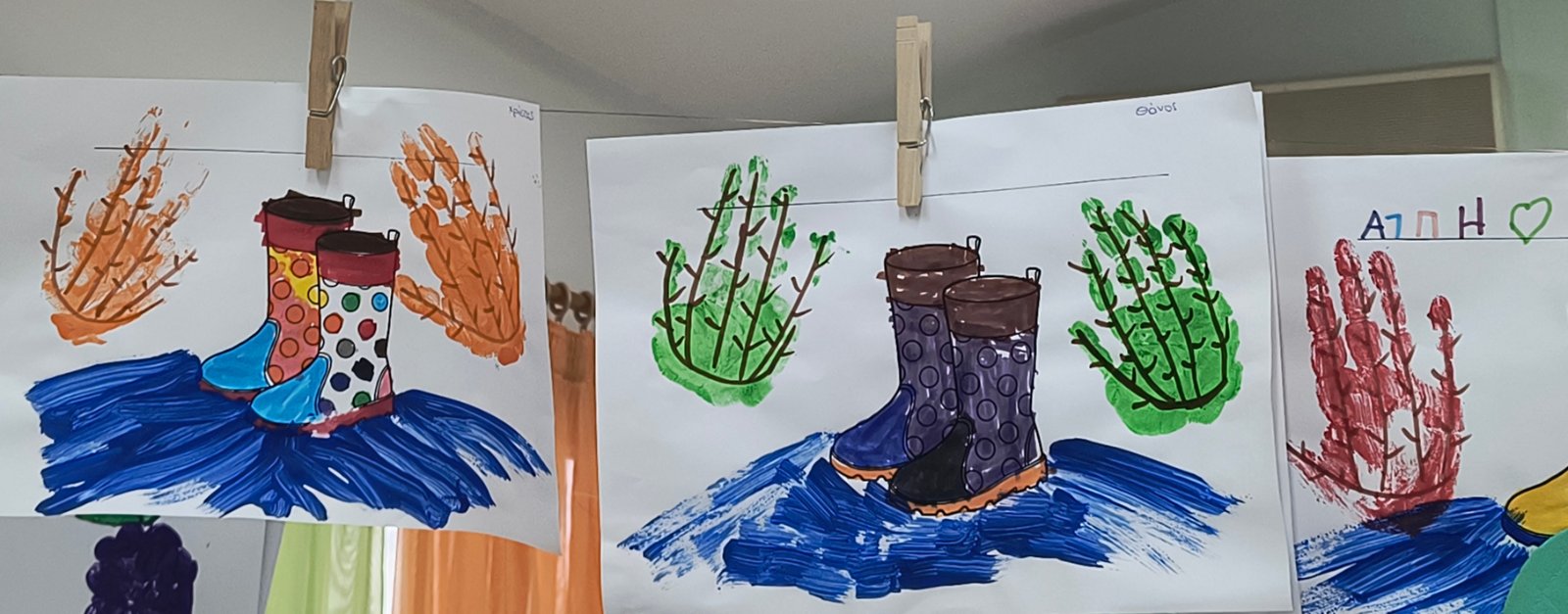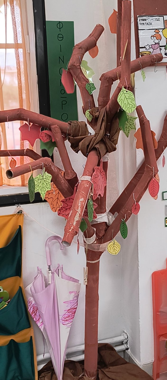Το φθινόπωρο έφτασε και τα παιδιά το υποδέχτηκαν με χαρά! Με αφορμή, μεταξύ άλλων, τραγούδια και εικόνες για το φθινόπωρο , την άλλοτε καθοδηγούμενη και άλλοτε αυθόρμητη παρατήρηση του Περιβάλλοντος της αυλής, τις προσωπικές εμπειρίες που τα νήπια/προνήπια μοιράστηκαν με την ομάδα των συμμαθητών τους, προβληματίστηκαν για τις αλλαγές που φέρνει η συγκεκριμένη Εποχή στη Φύση, αναρωτήθηκαν για ποιον λόγο συμβαίνει αυτό κάτι που οδήγησε σε περαιτέρω διερεύνηση του καιρού και του Περιβάλλοντος γύρω μας. Οι μαθητές/τριες βγήκαν στην αυλή με τις εκπαιδευτικούς τους, παρατήρησαν τα πεσμένα φθινοπωρινά φύλλα, πρόσεξαν τα χρώματα των πεσμένων φύλλων, συγκέντρωσαν ξερά φύλλα και τα τοποθέτησαν σε μια γωνιά για παρατήρηση στην τάξη, συζήτησαν με τους συμμαθητές τους για τις αλλαγές στη φύση και τον καιρό, έπαιξαν, έκαναν ατομικές εργασίες και ομαδικές κατασκευές , γνώρισαν το γράμμα Φ του φθινοπώρου, το σχημάτισαν, δούλεψαν με πλαστελίνη, μαρκαδόρους, ψαλίδι Ακόμη, επεξεργάστηκαν τα χρώματα του φθινοπώρου, πειραματίστηκαν με την ανάμιξη χρωμάτων κ.ο.κ.