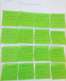 Οι μαθητές μας αξιοποίησαν τη ρουτίνα σκέψης “Βλέπω, Σκέφτομαι, Αναρωτιέμαι” του προγράμματος Artful Thinking. Οι σκέψεις και οι ιδέες που ακούγονταν, όλες καταγράφηκαν σε χαρτάκια, τα οποία και αναρτήσαμε δίπλα στον διαδραστικό πίνακα, προκειμένου να γίνεται ορατή η σκέψη τους και σε επόμενες χρονικές στιγμές.