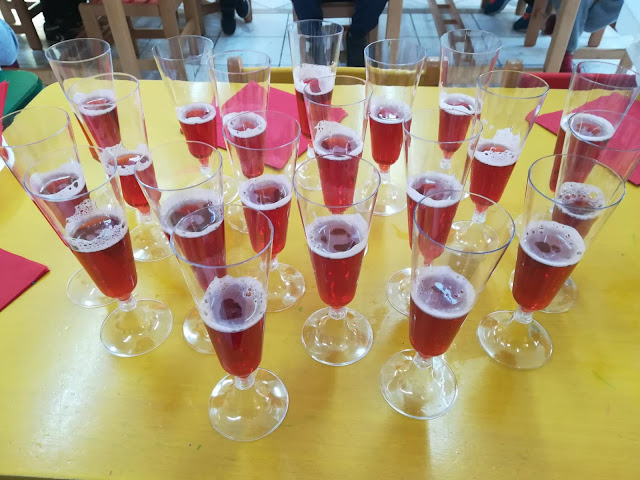 Κι επειδή από ένα ρεβεγιόν δεν λείπει η σαμπάνια, ήπιαμε κι εμείς χυμό φράουλας σε ποτήρια σαμπάνιας.
