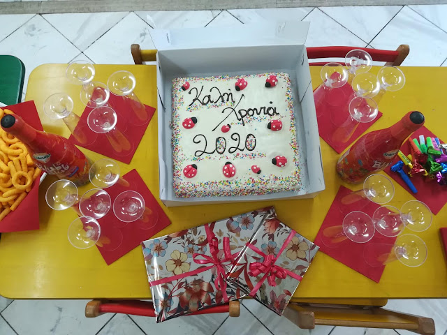 Εκτός τη γευστική και φρεσκότατη βασιλόπιτα, που μας ετοίμασε η μανούλα της Ανδριάννας και την ευχαριστούμε πολύ για αυτό, οι ίδιοι οι μαθητές είχαν ετοιμάσει για την ημέρα, τα καπέλα του 2020.