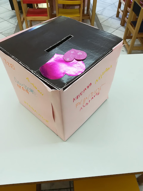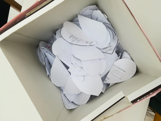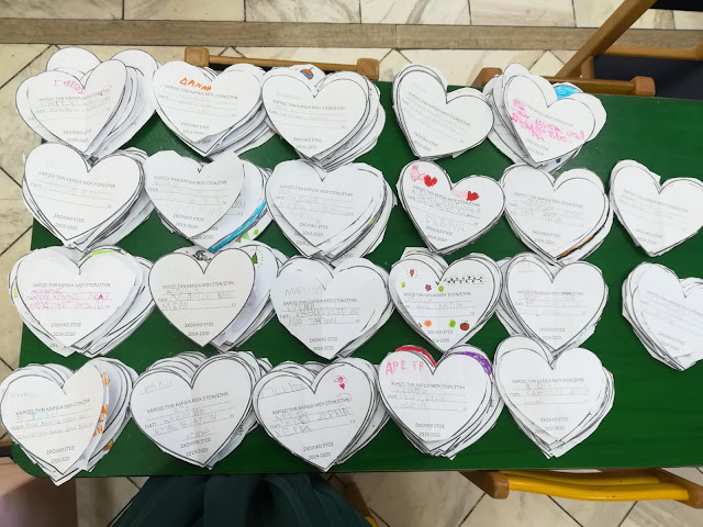 Τέλη Νοέμβρη μοιράστηκαν στους μαθητές τα έντυπα με τις καρδιές της Φιλίας καθώς και οι καταστάσεις με τα ονόματα των συμμαθητών τους. Οι γονείς ενημερώθηκαν για τη δράση και ο ρόλος τους ήταν να υπενθυμίζουν καθημερινά στο παιδί τους να κόβει την καρδιά της φιλίας , να λέει σε ποιον συμμαθητή του την χαρίζει και για ποιον λόγο. Οι γονείς έγραφαν σε ενα χαρτί, όσα τους υπαγόρευε το παιδί και στη συνέχεια αυτά αντέγραφαν πάνω στις καρδιές. Κάθε μέρα έφερναν τις έτοιμες καρδιές στο σχολείο και τις έριχναν μέσα στο κουτί. Αυτό επαναλαμβανόταν μέχρι να ετοιμάσουν όλοι οι μαθητές από μία καρδιά για όλους τους φίλους τους. Η διευκρίνιση που ζητήθηκε από τους γονείς ήταν να μην δέχονται απο τα παιδιά την ίδια αιτιολογία, αναφορικά με την αιτιολογία , στο γιατί δίνω την καρδιά μου σε κάποιον, έτσι ώστε να ακουστούν πολλές, διαφορετικές και όμορφες απόψεις.