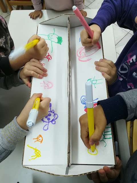Πριν ξεκινήσει η δράση μας είχα ρωτήσει τα παιδιά να μου πουν τα χρώματα που θα έπαιρναν κάποια συναισθήματα αν γινόταν. Μου απάντησαν: