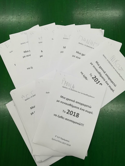 Η “βαλίτσα των συναισθημάτων” εξυπηρετεί αυτούς ακριβώς τους σκοπούς. Εξήγησα στα παιδιά ότι μέσα στην βαλίτσα θα αφήσουμε όλοι τα έντονα συναισθήματα που νιώσαμε το 2017, θετικά και αρνητικά, για να το αποχαιρετήσουμε και να νιώσουμε έτοιμοι να υποδεχτούμε το νέο χρόνο. Σε αυτή μας τη δράση βοηθοί μας είναι οι γονείς των παιδιών, οι οποίοι ενημερώθηκαν σχετικά σε πρόσφατη συνάντηση μας.