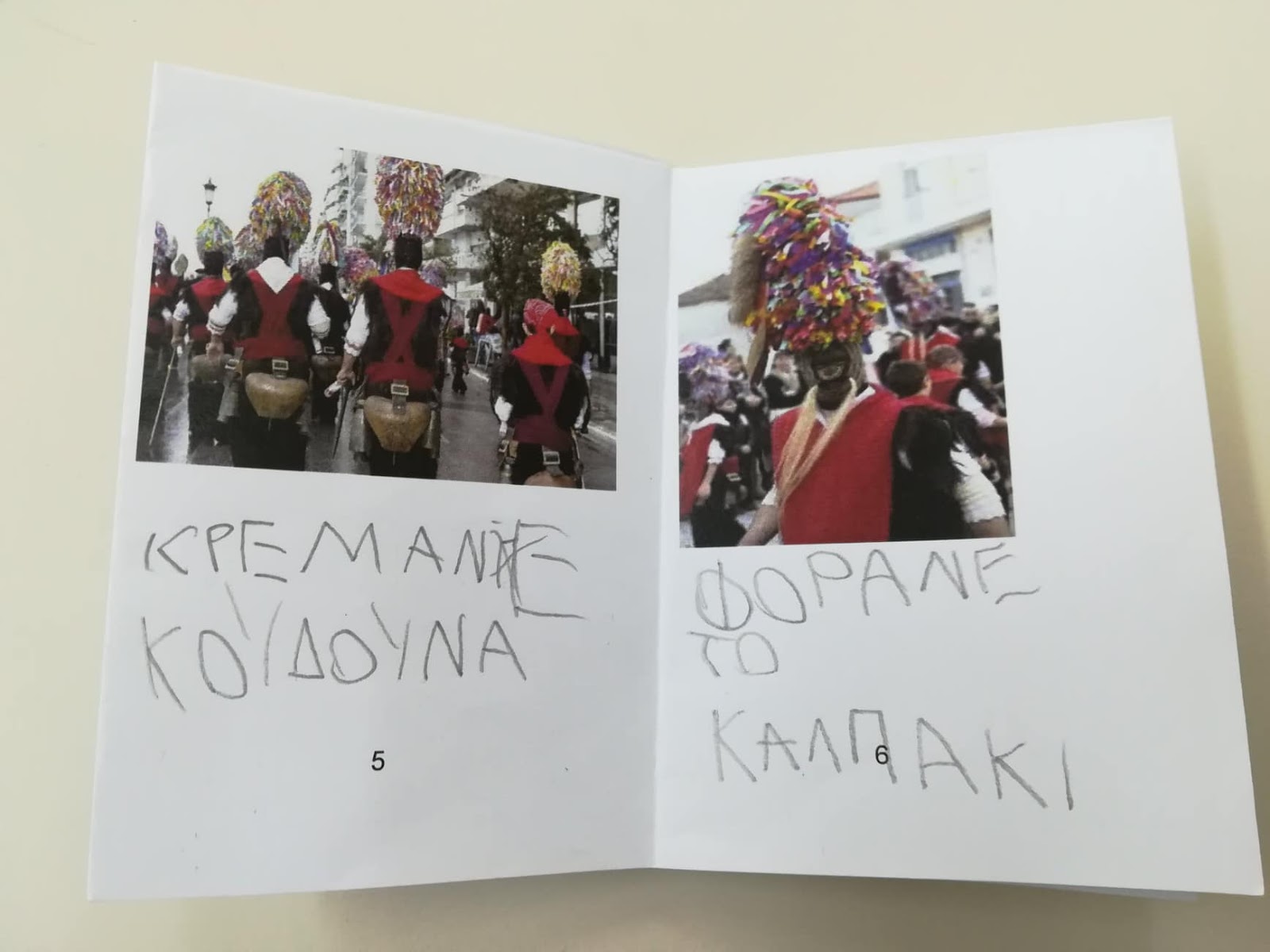 Μια βδομάδα πριν ανοίξει το Τριώδιο, αναφερόμενη στις Απόκριες που πλησίαζαν και στις διαφορές της αποκριάτικης στολής με τις παραδοσιακές φορεσιές της χώρας μας, πρόβαλα στα παιδιά βίντεο από του Υoutube με χορευτές που φορούσαν διαφορετικές φορεσιές ανά τόπους και εποχές. Τα παιδιά παρατήρησαν διαφορές στα χρώματα, στα υφάσματα, στα “κομμάτια” της φορεσιάς (πουκάμισο, φουστανέλα, βράκα, παντελόνι, φέσι, καπέλα, κ.α). Τότε ήταν που τους μίλησα για διάφορα αποκριάτικα έθιμα που συνηθίζουν μέχρι και σήμερα να αναβιώνουν σε πολλές περιοχές της χώρας μας, με σκοπό οι συμμετέχοντες αλλά και οι θεατές, να διασκεδάσουν, να χαρούν, να υποδεχτούν την Σαρακοστή που ξεκινά με το τέλος της Αποκριάς, την Άνοιξη που ξαναγεννιέται.