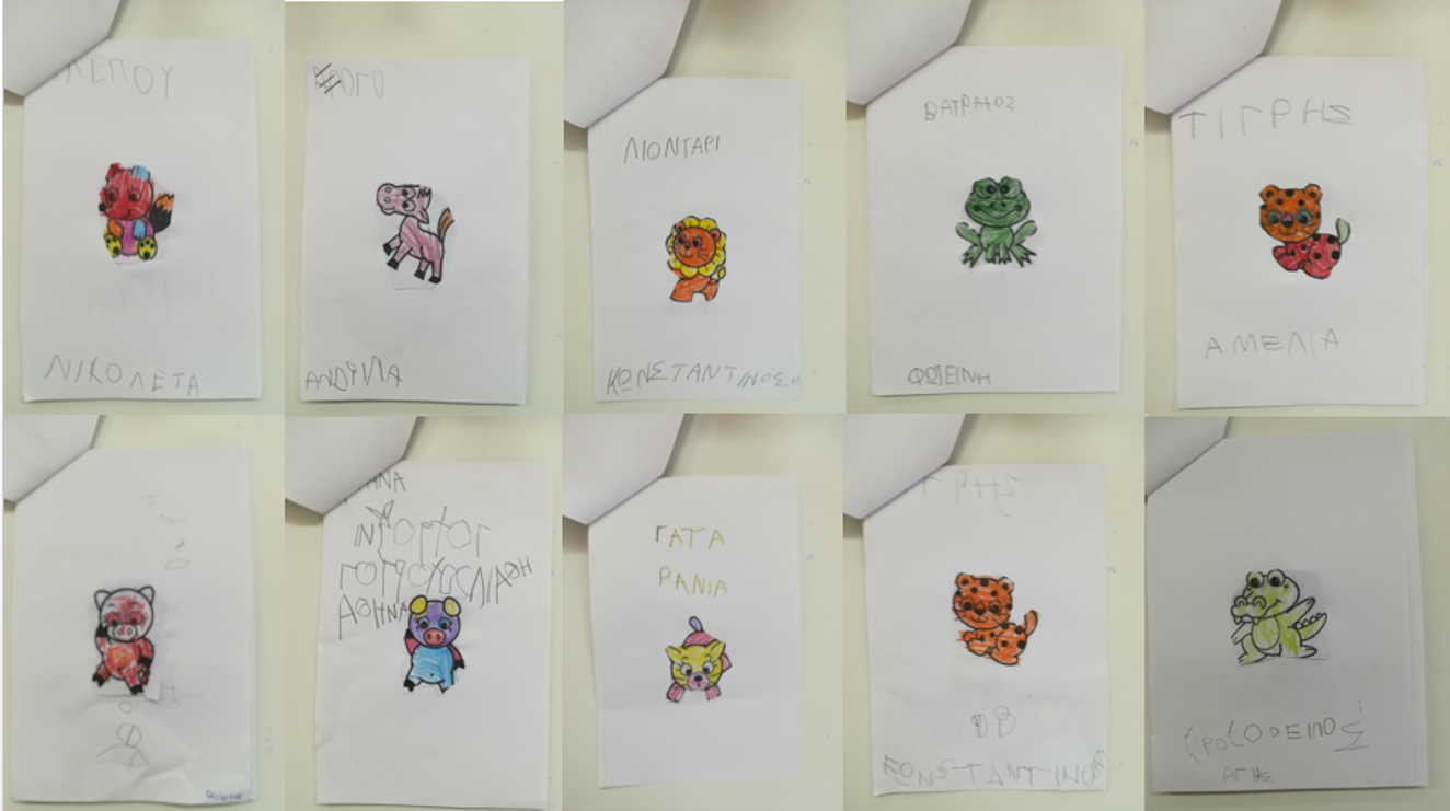 Κάθε μέρα με κλήρωση, ένας μαθητής παίρνει το φάκελλο με το βιβλίο στο σπίτι. Πρόκειται για ένα βιβλίο-κατασκευή, που αποτελείται από συρραμένες σελίδες με ζωάκια που ζωγράφισαν, έκοψαν και κόλλησαν τα παιδιά πάνω σε λευκό χαρτί. Επιπλέον έγραψαν το όνομα του ζώου και βέβαια το δικό τους όνομα.Ενδεικτικά παραθέτονται παρακάτω κάποιες απο τις σελίδες του βιβλίου.