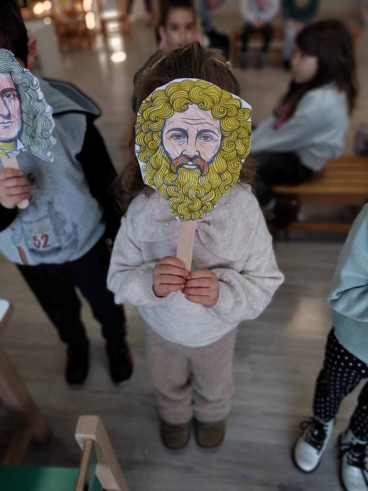 Προετοιμαστήκαμε και για την τελική διαδικτυακή συνάντηση των μαθητών και αφού είναι περίοδος αποκριών σκεφτήκαμε να παρουσιαστούν οι μαθητές μπροστά στην οθόνη φορώντας τη μάσκα του αγαπημένου τους επιστήμονα! Η ιδέα ξετρέλανε τα παιδιά και αμέσως θέλησαν να τις φτιάξουν.