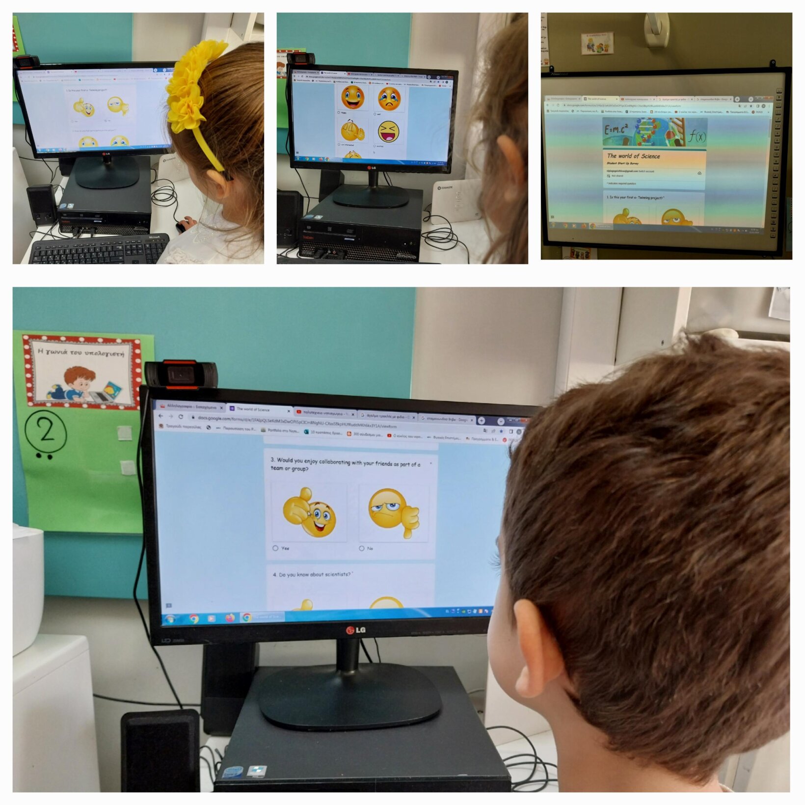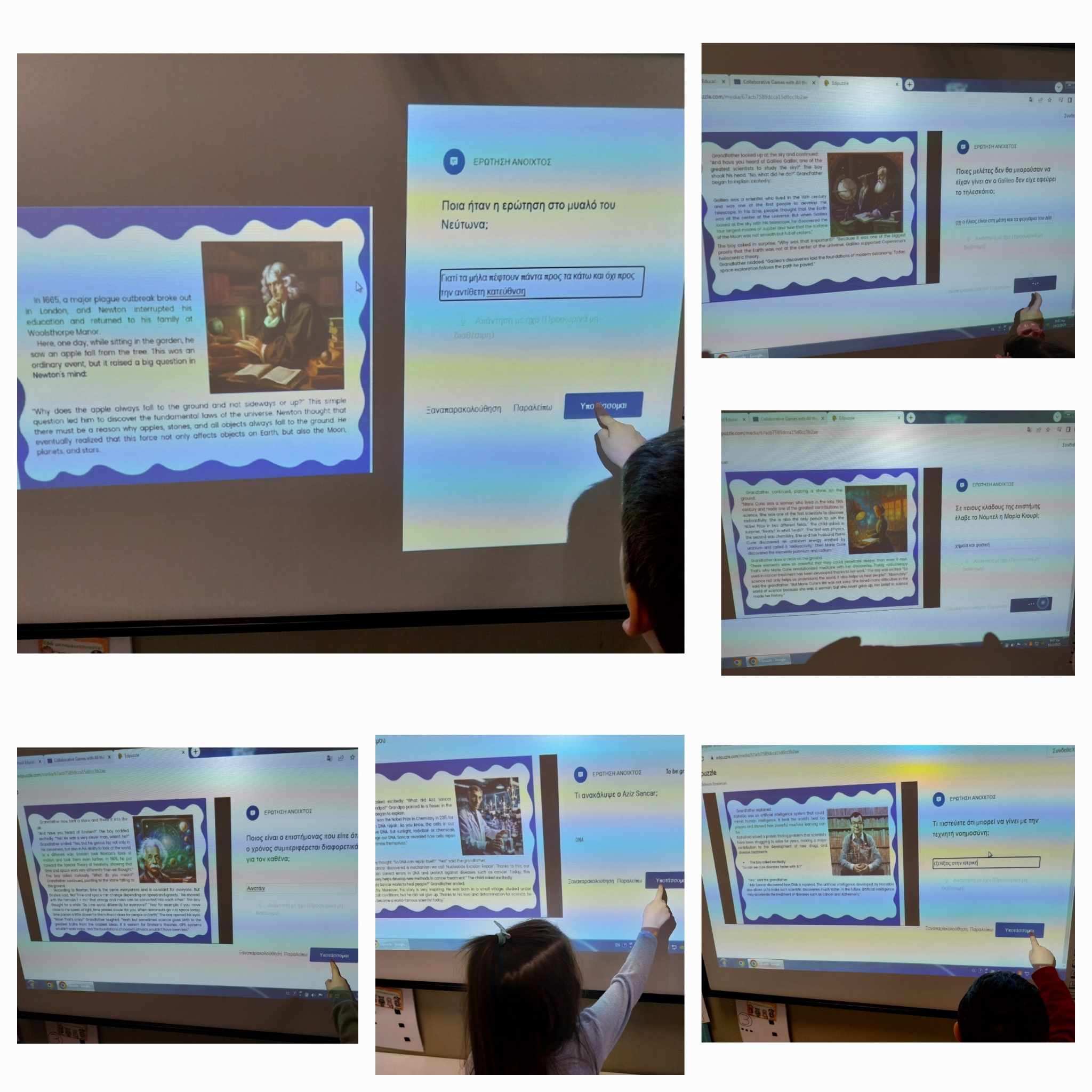 Παίξαμε ψηφιακά παιχνίδια που με παιγνιώδη τρόπο μπορούσαμε να αξιολογήσουμε τις γνώσεις των παιδιών καθώς ήταν επαναληπτικά και αφορούσαν όλους τους επιστήμονες που γνώρισαν. Το ένα ήταν κουίζ και το άλλο η ιστορία απο το συνεργατικό βιβλίο. Τους άρεσαν παρα πολύ, διασκέδασαν και χάρηκαν.