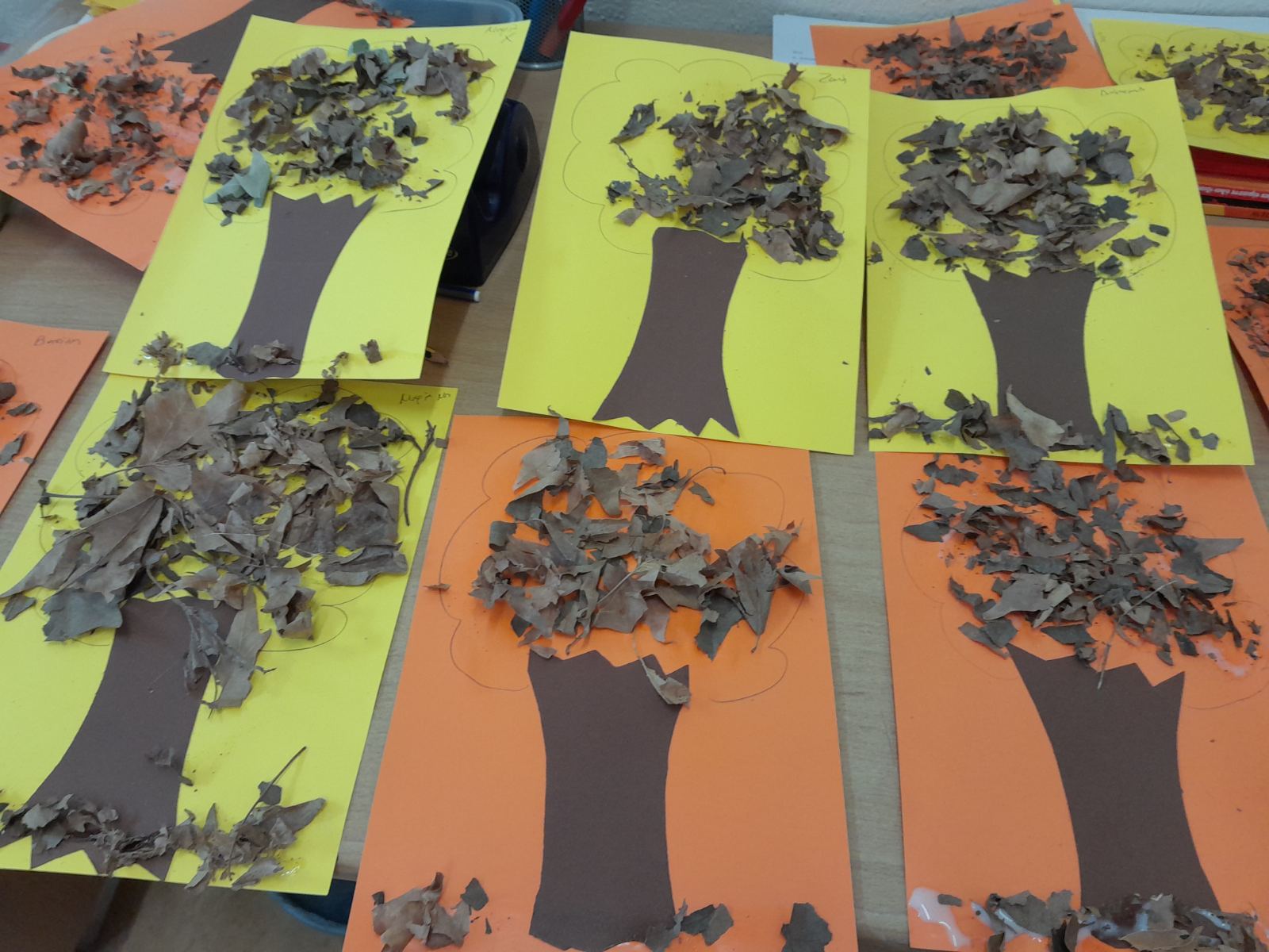 Μέσα Φθινοπώρου και από τα δέντρα του σχολείου μας πέφτουν ξερά φύλλα. Σήμερα λοιπόν βρήκαμε την ευκαιρία μαζέψαμε μερικά, τα κόψαμε, τα κολλήσαμε και φτιάξαμε υπέροχα ΦΥΛΛΟΔΕΝΤΡΑΚΙΑ!