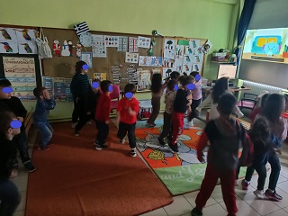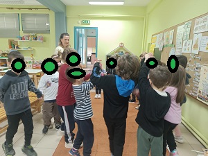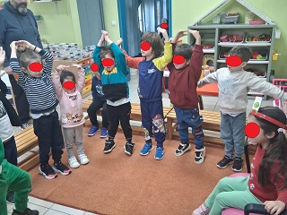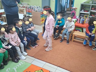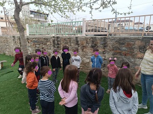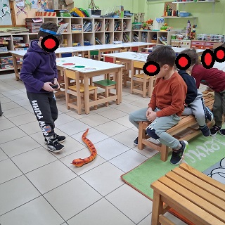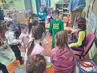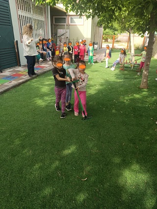 Τέλος παίζουμε ένα παιχνίδι, προσπαθούμε με κλειστά μάτια να τοποθετήσουμε στη σωστή θέση την ουρά του ζώου.