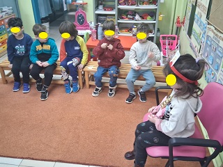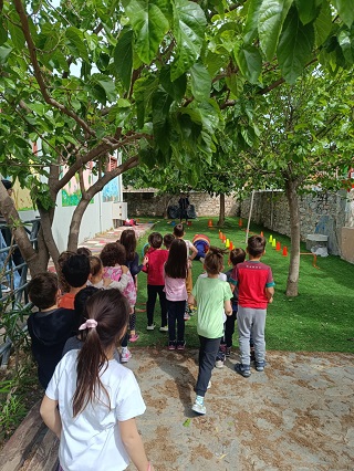 Αφού διαβάσαμε το παραμύθι τα παιδιά μπήκαν στη θέση της καμηλοπάρδαλης, έγιναν ζευγάρια και ο ένας βοηθούσε τον άλλο που δεν έβλεπε και τέλος συμπληρώσαμε ένα φύλλο εργασίας με τα συναισθήματα της ηρωίδας.