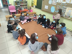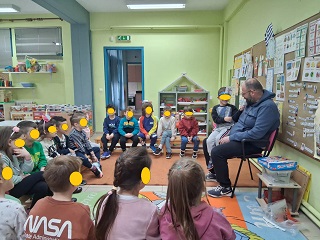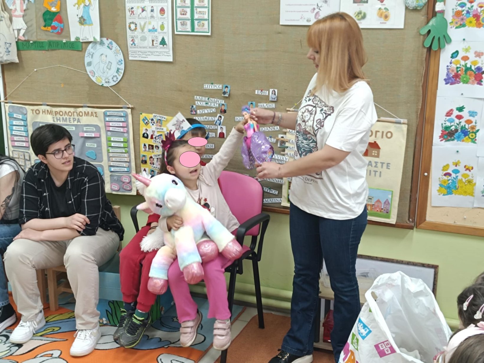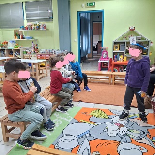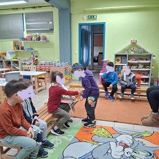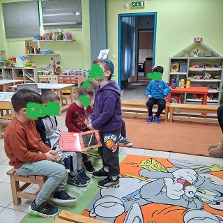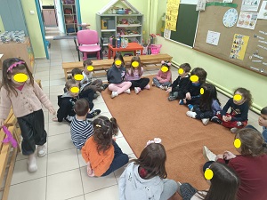 Μετά την ανάγνωση έγινε συζήτηση γύρω από το βιβλίο για την κατανόησή του και συζήτηση γύρω από το θέμα της διαφορετικότητας. Τα παιδιά είπαν τις σκέψεις τους για τους ήρωες και διατύπωσαν τα συναισθήματά τους. Στο τέλος μαζί με τα παιδιά αποφασίσαμε να ζωγραφίσουμε σκηνές από το παραμύθι . Διάλεξε ο καθένας την αγαπημένη του σκηνή και την ζωγράφισε πάνω σε ένα μεγάλο χαρτόνι ώστε να δημιουργήσουμε το δικό μας βιβλίο σαν κόμικς για να το διαβάζουμε οπότε θέλουμε.