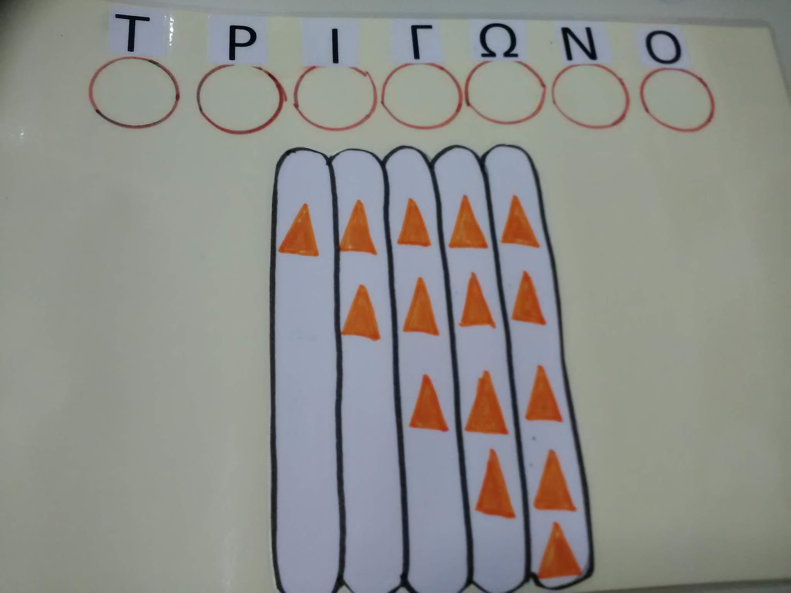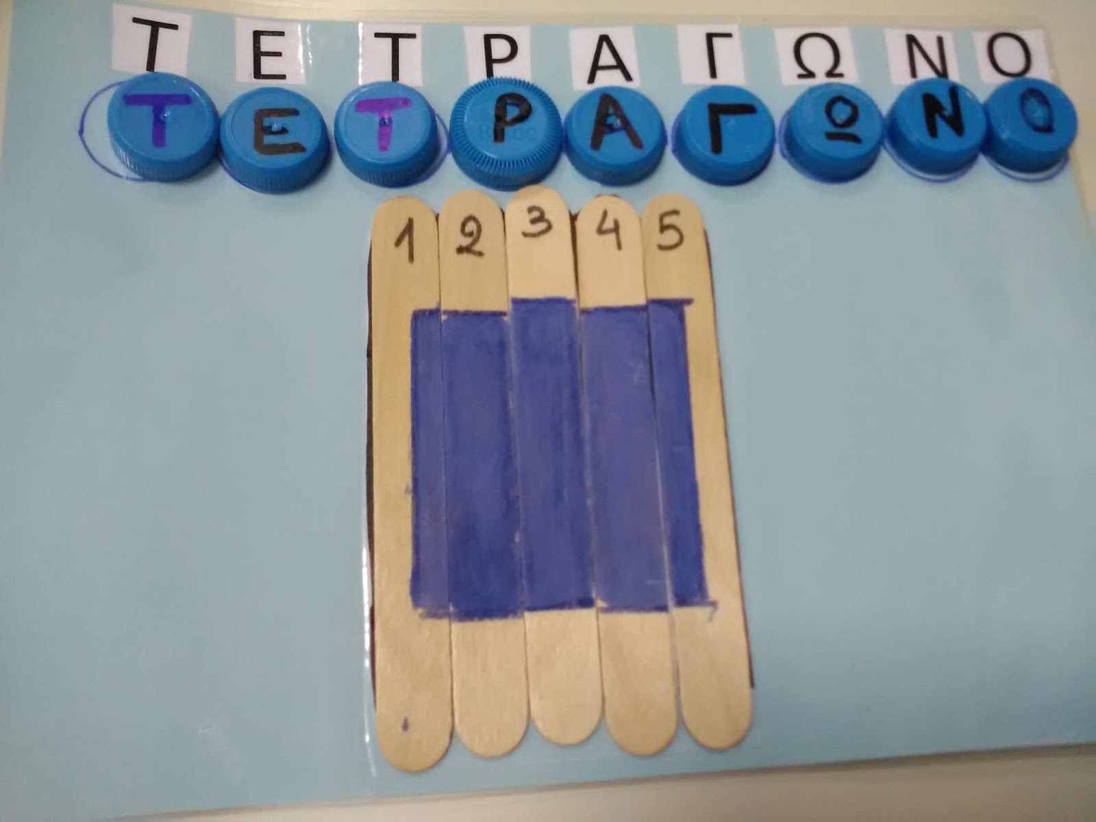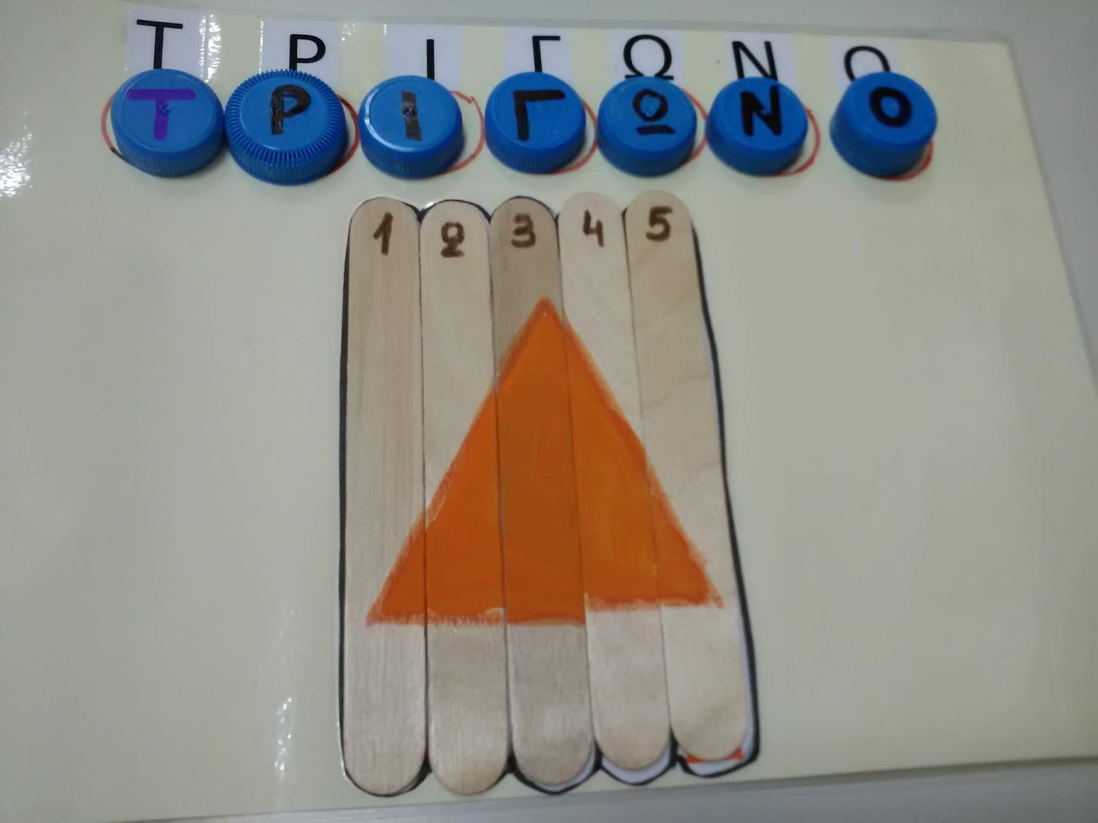 - καπάκια με γράμματα που σχηματίζουν τις ονομασίες των σχημάτων
