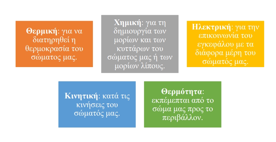 π.χ. Ο άνθρωπος χρειάζεται ενέργεια για να τρέξει, να δουλέψει κλπ.
