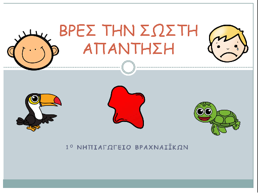 Οι ασκήσεις είναι βασισμένες στο βιβλίο “Η γλώσσα στο νηπιαγωγείο” Αρμενιάκου, Χριστόγερου, Μπεσίρης.