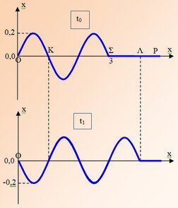 δ) Ποια είναι η διαφορά φάσης μεταξύ των σημείων Κ και Λ σε μια οποιαδήποτε χρονική στιγμή t ≥ t1;