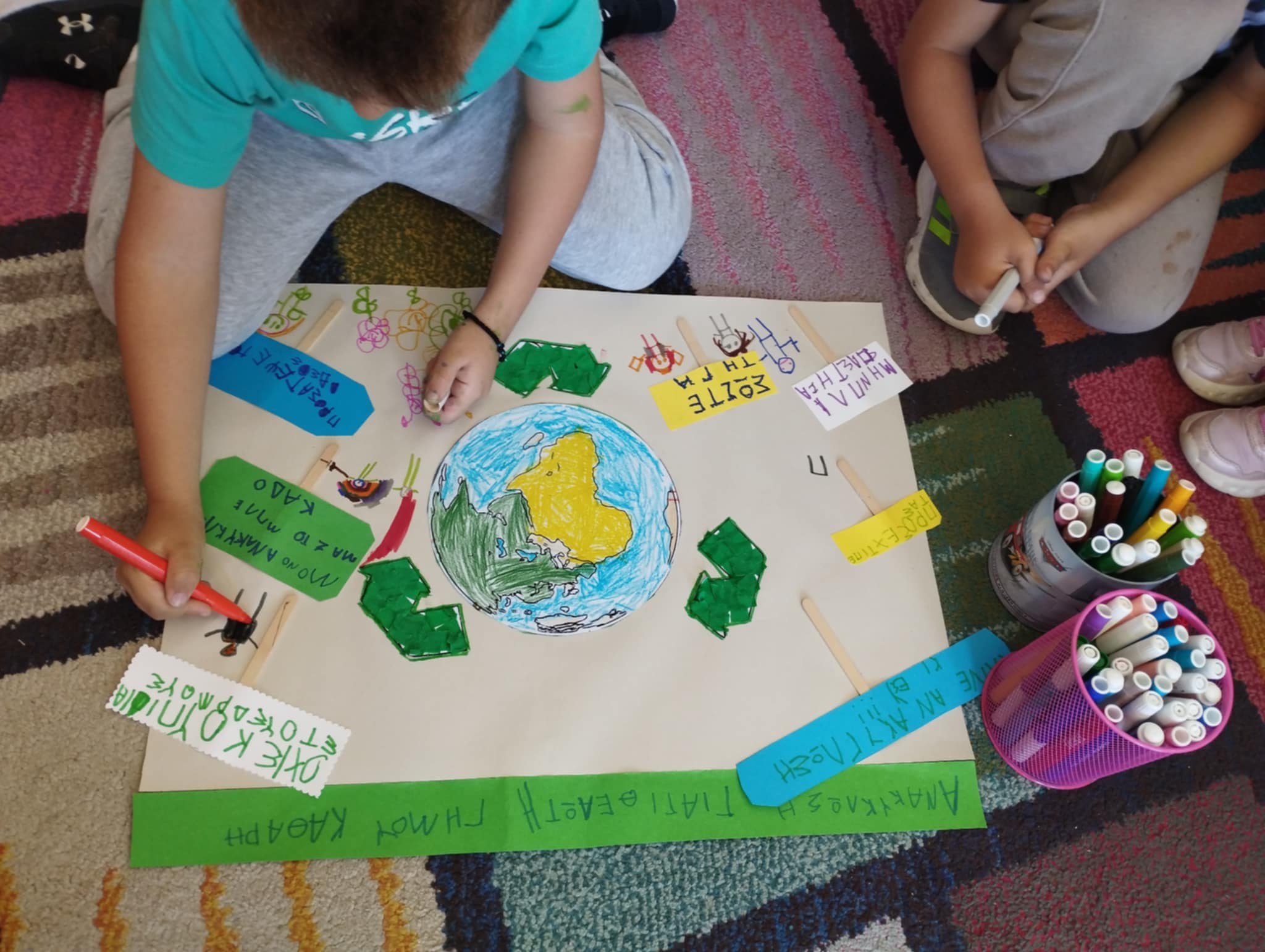 Η γωνιά της ζωγραφικής εμπλουτίστηκε με τις ζωγραφιές των παιδιών που ζωγράφισαν επηρεασμένα απο την Γιαγιόι Κουσάμα