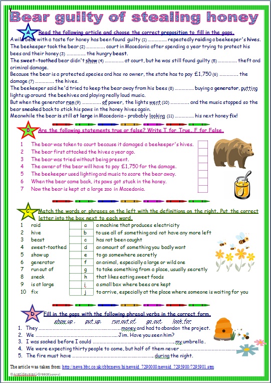 This worksheet is based on a short video about the New Zealand earthquake (Feb. 22, 2011). It contains a set of comprehension questions, a gap-filling exercise and a vocabulary exercise.
