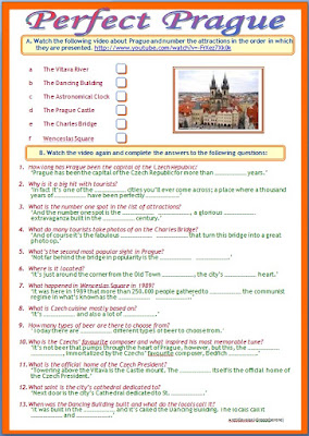 After watching the video the students are expected to number the attractions in the correct order and then to complete the answers to a set of comprehension questions.