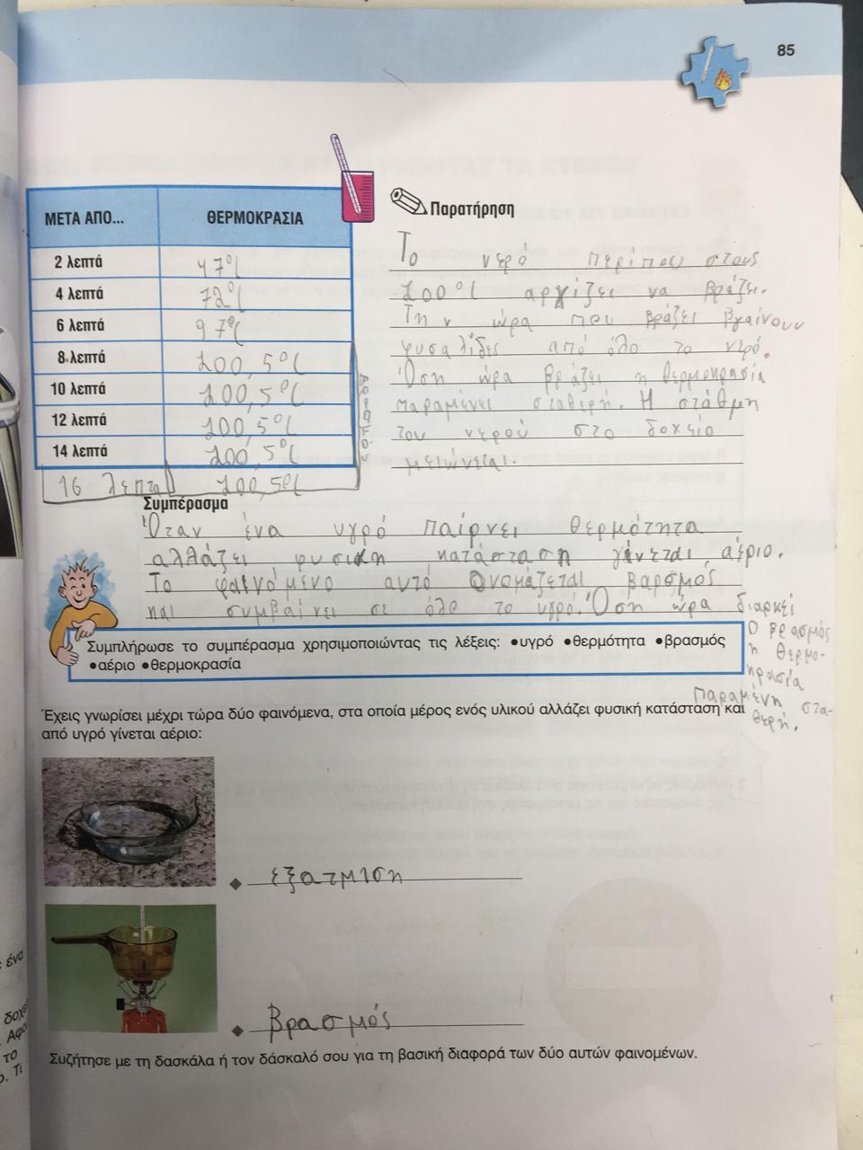 Στη φυσική κάναμε τις σελίδες 84-86 για τον βρασμό.