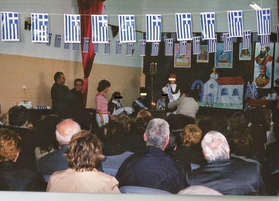 25η Μαρτίου-το κρυφό σχολειό(διακρίνεται στη σκηνή αριστερά το μανουάλι που μεταφέραμε από την εκκλησία στην αίθουσα του πολιτιστικού συλλόγου για τις ανάγκες της γιορτής μας)