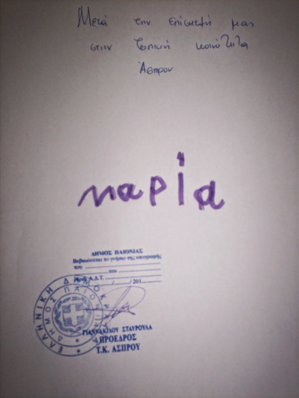 Σφραγίδα της κοινότητας και το γνήσιο της υπογραφής μας