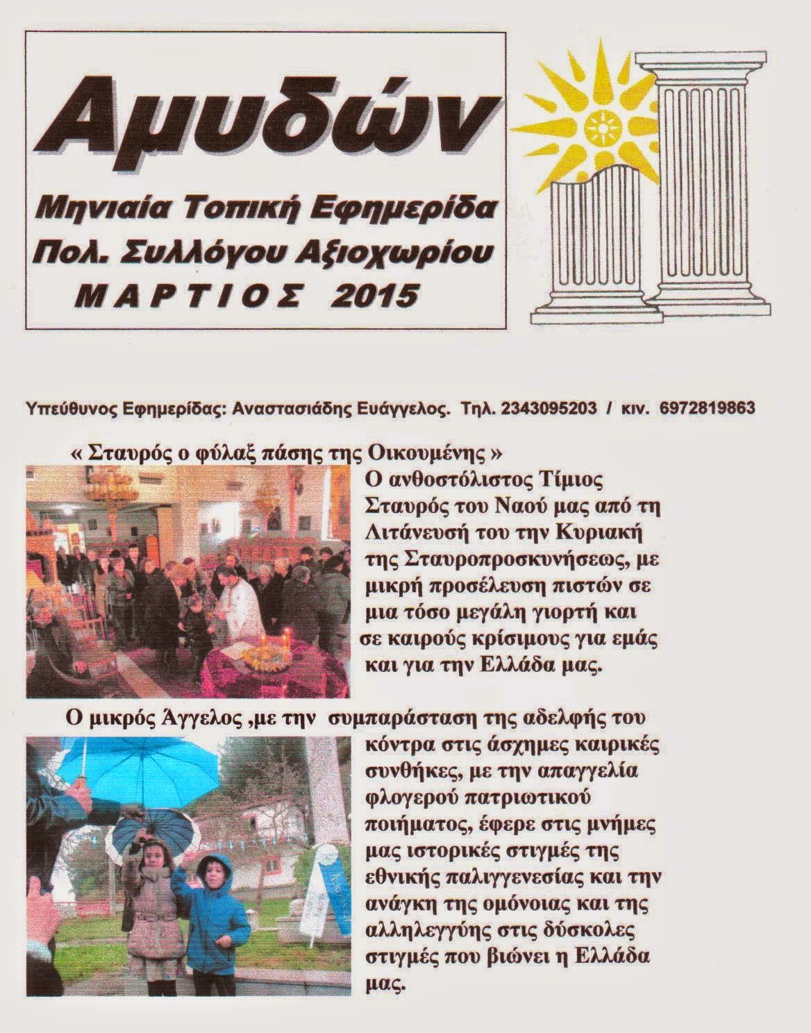 Η τοπική εφημερίδα ΑΜΥΔΩΝ φιλοξενεί στις σελίδες της αφιέρωμα για τις δράσεις και τις εργασίες του νηπιαγωγείου μας. Πατήστε στην εικόνα