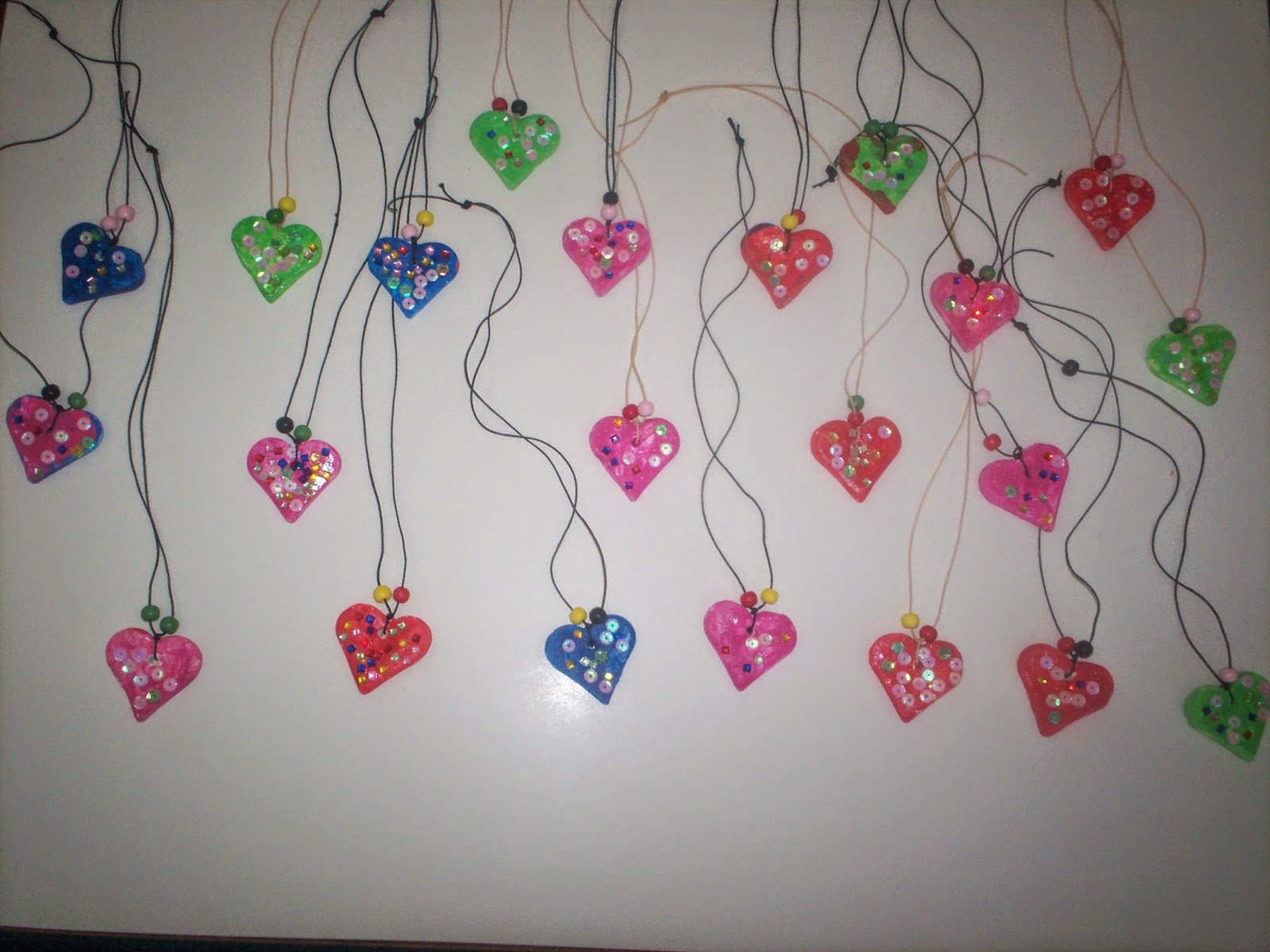 | καρδούλες για το λαιμό από πηλό και κάρτες λουλούδια με ευχούλες |