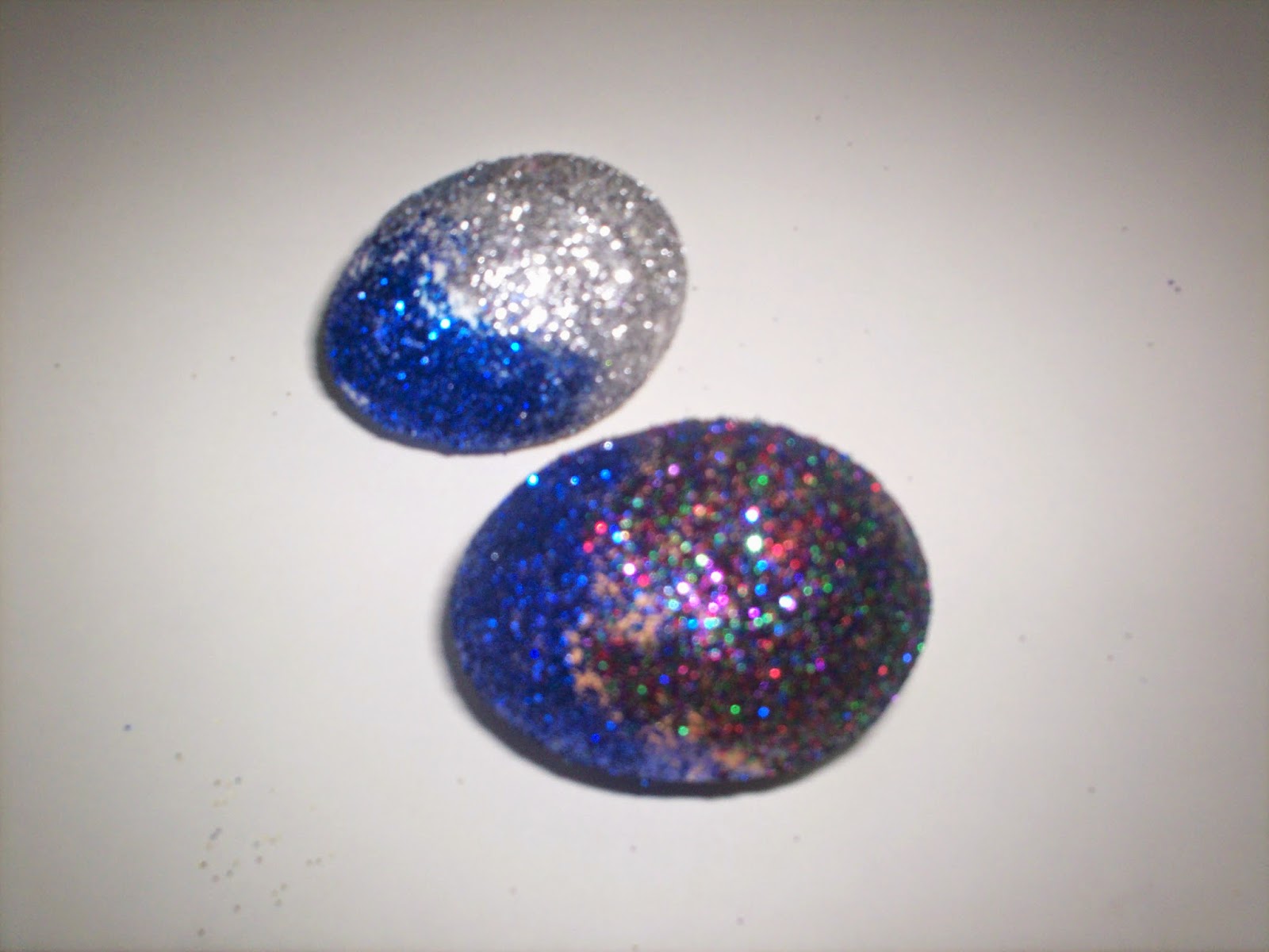 βάζουμε κόλα στο αυγό, πασπαλίζουμε με χρυσόσκονη και μετά άφθονη λακ και είναι έτοιμα